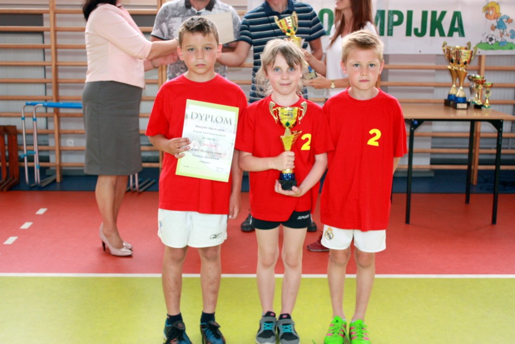 Jedną z pięknych tradycji sportowych związanych na stałe z Dniami Sokółki jest Międzyszkolny Turniej Sportowy „Olimpijka”, rozgrywany już od dwunastu lat w Zespole Szkół Ogólnokształcących na Osiedlu Zielonym w Sokółce. Warto przypomnieć, że pomysłodawcami tych zawodów są nauczyciele edukacji wczesnoszkolnej Szkoły Podstawowej nr 3, z którymi początkowo współpracowały koleżanki z klas integracyjnych ZSI, panie Dorota Surmacz i Ewa Dziewiątkowska.  Z biegiem lat zaczęli dołączać sportowcy z kolejnych szkół miasta i gminy Sokółka, turniej stawał się coraz bardziej znany i popularny. W tegorocznej edycji wzięło  udział aż 110 zawodników z pięciu szkół: SP1, ZSI, SP3, SP w Starej Kamionce i SP w Boguszach. Zawody zaszczycili swoja obecnością: burmistrz Sokółki pan Adam Kowalczuk, pani dyrektor ZSO Anna Andrzejewska, nauczyciele i opiekunowie dzieci, rodzice oraz uczniowie poszczególnych szkół przybyli w charakterze kibiców. Sportowe zmagania poprzedził występ formacji tanecznej „Rytm” z klas drugich  i trzecich tutejszej szkoły, prowadzonej przez panie Barbarę Chancewicz i Dorotę Kamińską. Dziewczynki zatańczyły taniec „Iko, iko” i „ C’est la vie”. Następnie rozpoczęły się zawody, którym sędziowali: Andrzej Ignatowicz (sędzia główny), Radosław Kacunel, Krzysztof Kosacki, Stanisław Mitrosz i Katarzyna Chociej. Trzeba przyznać, że na zawodach panowała wspaniała atmosfera, nie zawiedli sportowcy, dając z siebie wszystko i grając fair play, ani kibice, którzy z całych sił zagrzewali swoich kolegów do walki. Mottem zmagań mogą być słowa hasła przyniesionego przez dzieci ze Starek Kamionki: „Czy wygramy, czy przegramy, my zabawę świetną mamy!” Ostateczny wynik rywalizacji przedstawia się następująco: