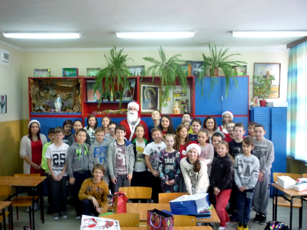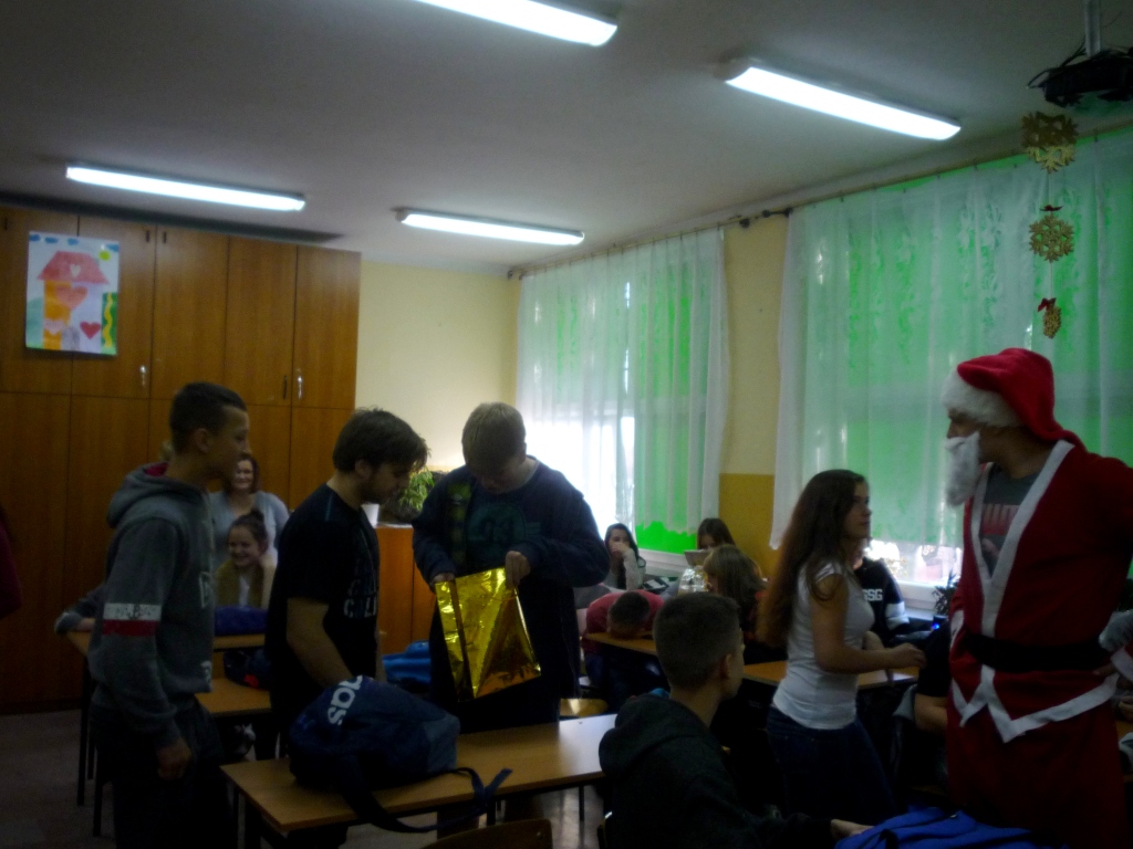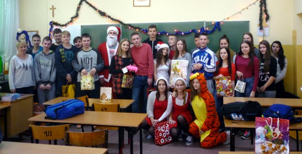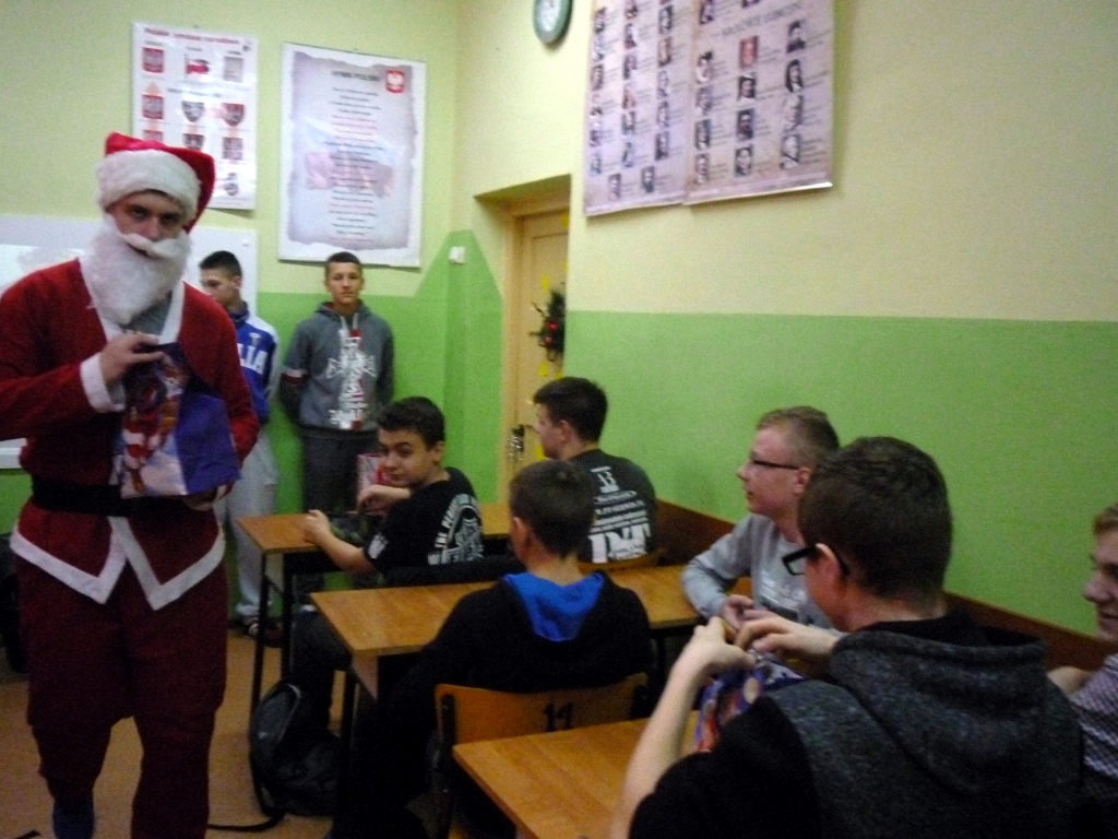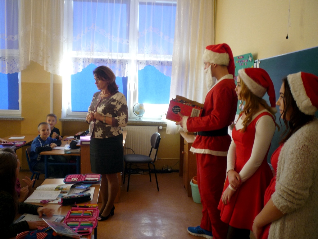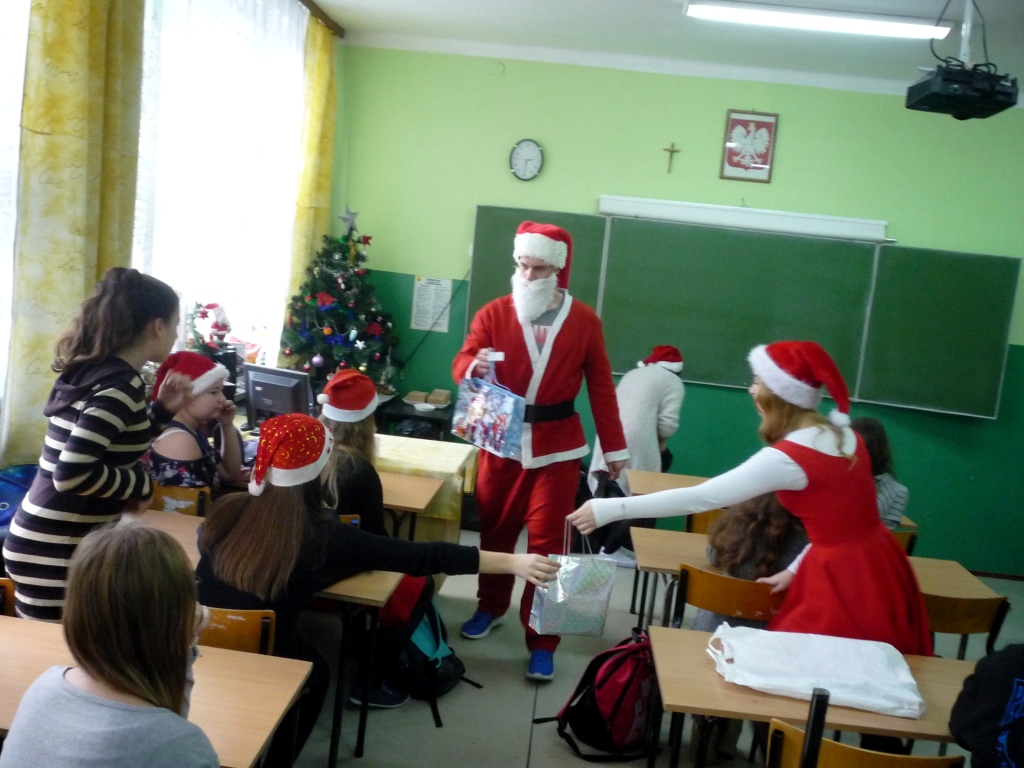 Dzień imienin Mikołaja, przypadający 6 grudnia jest okazją do wszelkiego rodzaju niespodzianek i obdarowania się drobnymi prezentami. W tym dniu uczniowie z Samorządu Uczniowskiego, w mikołajkowych strojach, odwiedzili w klasach swych szkolnych kolegów i przekazali upominki. Dzień upłynął w miłej atmosferze, bo przecież prezenty wszystkim sprawiają wiele radości. Nad sprawnym przebiegiem dnia czuwała p. Małgorzata Chociej.