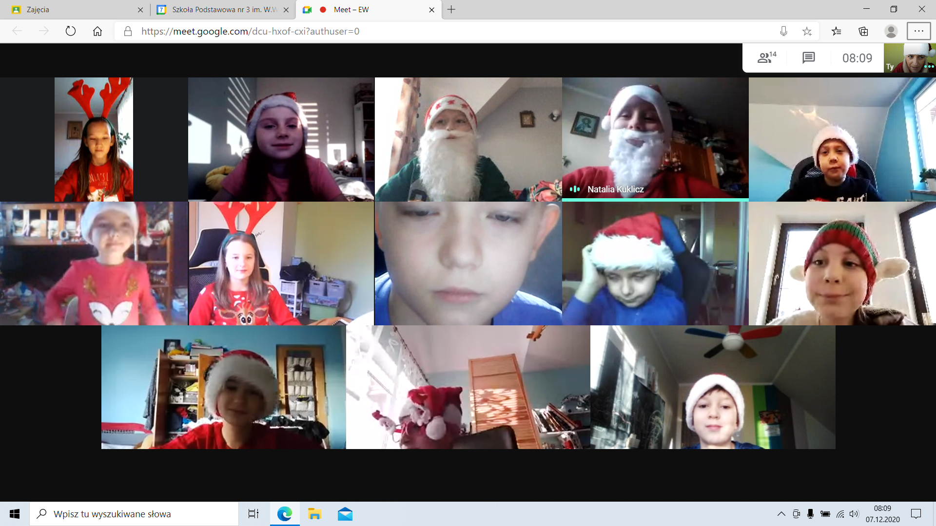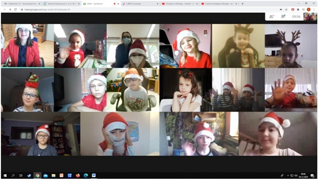 W dniach 5 i 7 grudnia w naszej szkole, jak co roku obchodziliśmy mikołajki, jednak w tym roku trochę inaczej. W czasie pandemii mikołajkowe obyczaje przeniosły się do sieci. Uczniowie na zajęcia online ubrali mikołajkowe czapki. Zamiast rzeczowych prezentów obdarowywali się miłym uśmiechem i dobrym słowem. Na lekcjach panowała mikołajkowa atmosfera. W młodszych klasach nauczyciele starali się uatrakcyjnić zajęcia przesyłając świąteczne piosenki i układy taneczne. Dzieci wykonywały też prace plastyczno – techniczne. Klasy starsze świętowały mikołajki na godzinie wychowawczej.