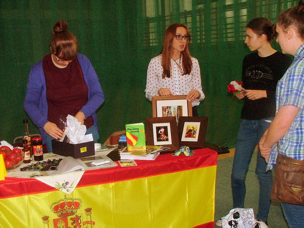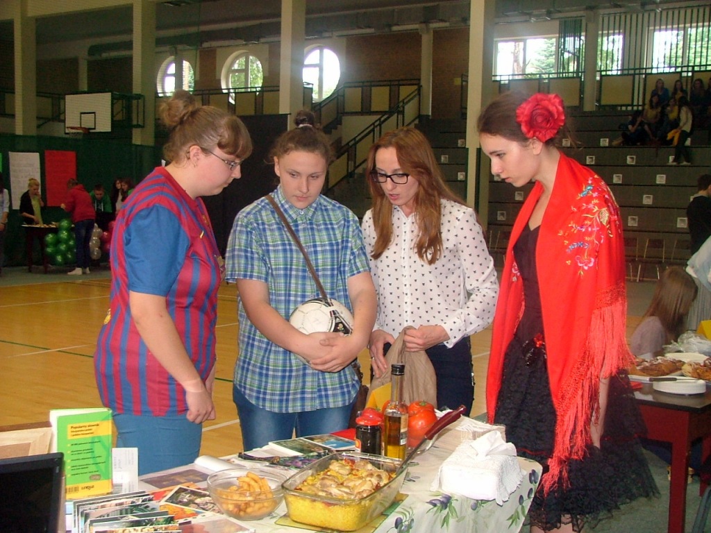 Dnia 2 czerwca pięcioosobowa grupa uczennic z klasy III B Gimnazjum w składzie : Monika Bakun, Aneta Gojko, Klaudia Kozioł, Karolina Lingo i Marlena Radkiewicz wzięły udział w konkursie „Młodzi sokółczanie w Europie”. Konkurs został zorganizowany przez Liceum Ogólnokształcące im. Mikołaja Kopernika w Sokółce w ramach obchodów Dnia Unii Europejskiej w tej szkole. Celem konkursu było zaprezentowanie wybranego kraju wchodzącego w skład Unii Europejskiej, nasz zespół prezentował Hiszpanię. Dziewczyny pomimo braku miejsc na podium wywiązały się z zadania rewelacyjnie, stoisko i prezentacja zrobiły ogromne wrażenie zarówno wśród członków komisji jak i publiczności. Dziewczyny dziękujemy za pracę i trud włożony w przygotowanie do konkursu.