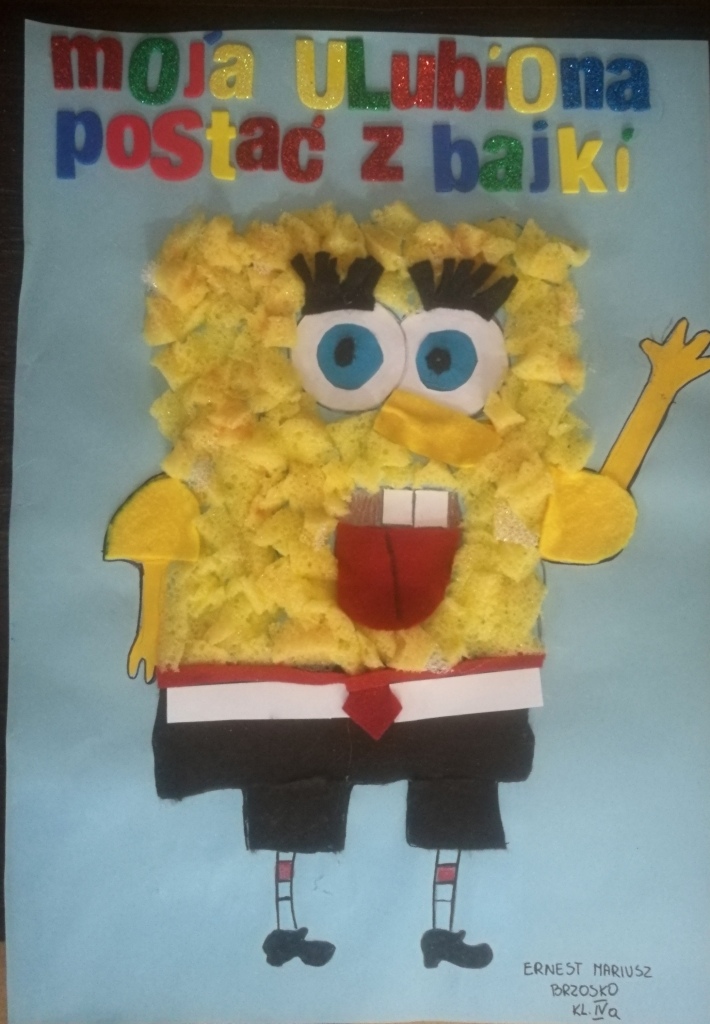 Uczniowie klas I-VI pracowały twórczo i aktywnie w domu i na zajęciach w świetlicy szkolnej. Zaprezentowały swoje talenty plastyczne przedstawiając ulubioną postać z bajki. Na pracach pojawili się znani bohaterowie z bajek telewizyjnych i literatury dziecięcej, min: Kubuś Puchatek, Myszka Miki, Spongebob, Merinda Waleczna, Pszczółka Maja, królewny, skrzaty i wiele innych postaci. Prace uczniów zostaną przekazane do Filii Bibliotecznej nr 1 na Osiedlu Zielonym – organizatora konkursu. Nad przebiegiem konkursu w szkole czuwała p. Jolanta Paruk.