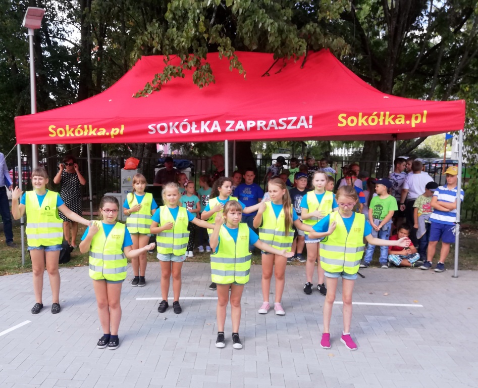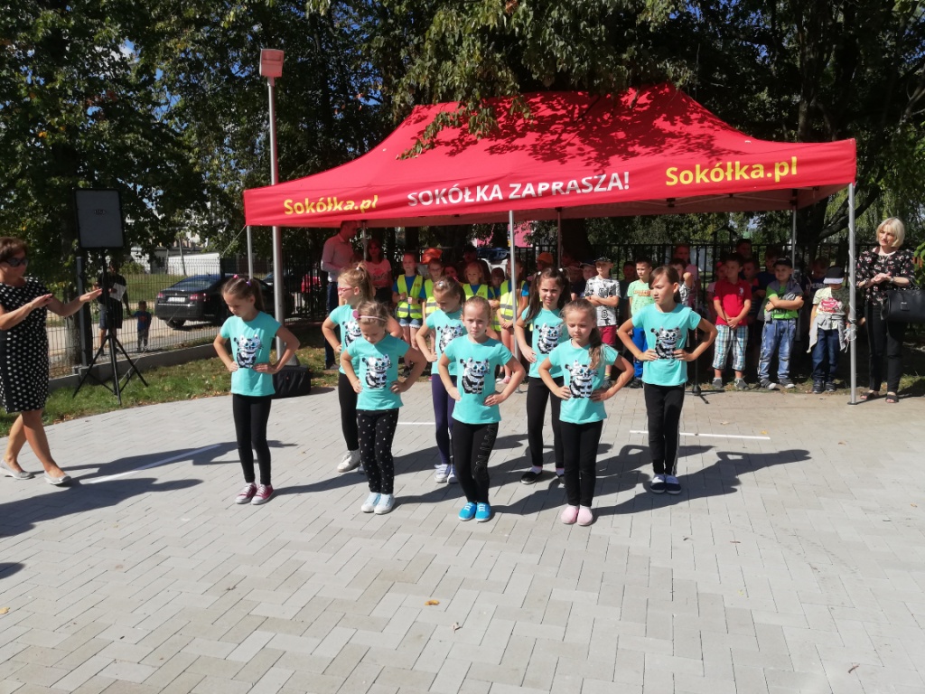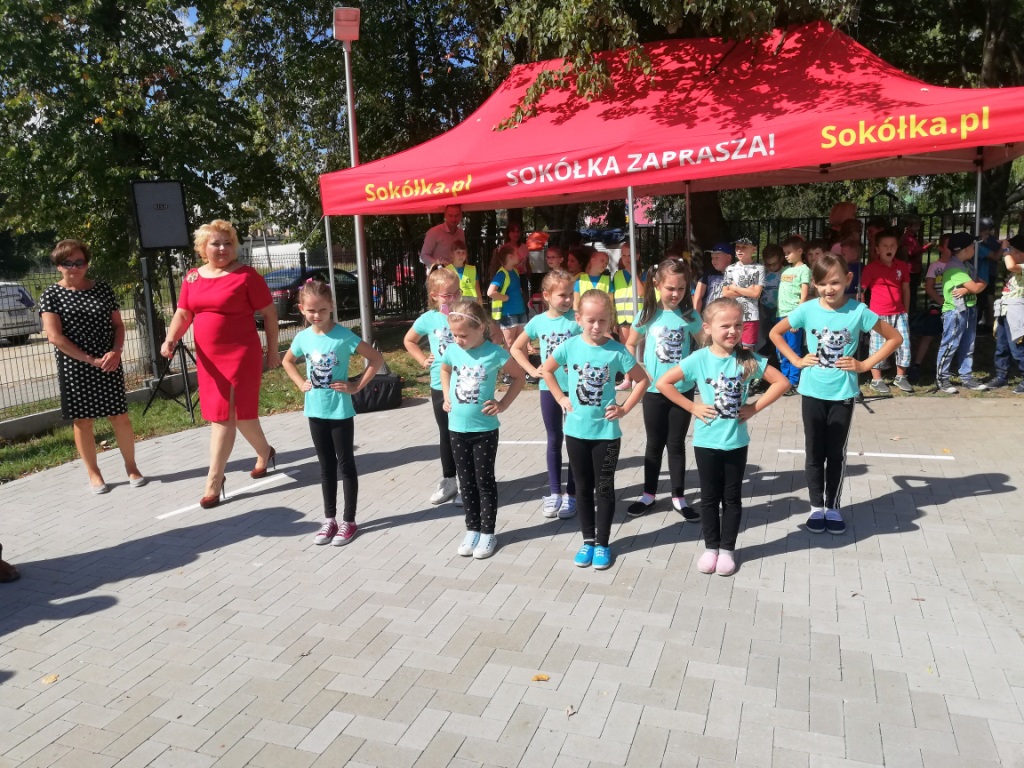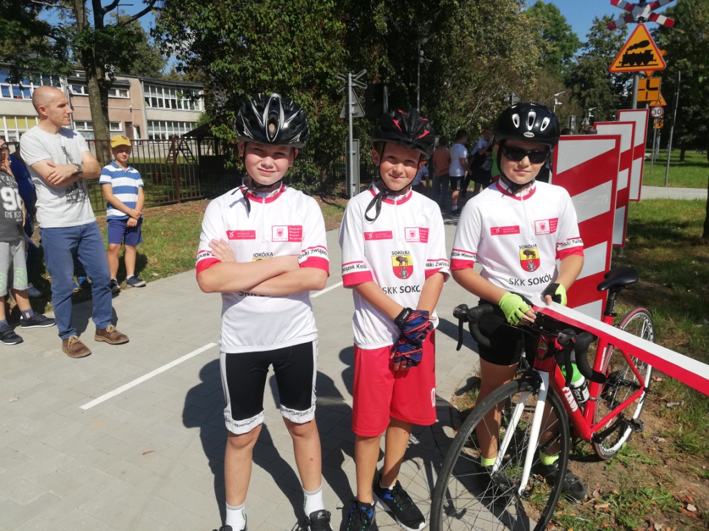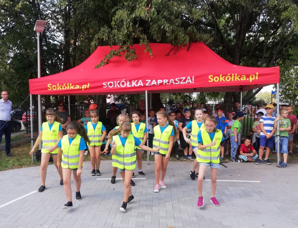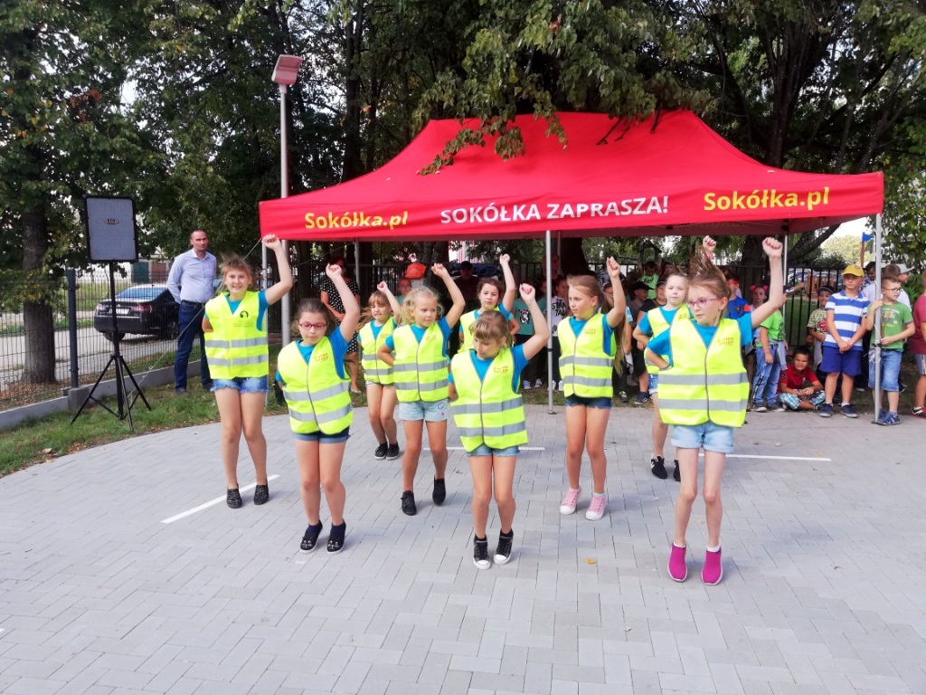 W dniu 5 września 2019 r. odbyła się uroczystość otwarcia Miasteczka Ruchu Drogowego. To zaniedbane nieco miejsce wygląda teraz naprawdę imponująco. Na placu zamontowano znaki drogowe, namalowano oznakowanie na jezdni, a nawet postawiono sygnalizację świetlną. Inwestycję oficjalne otworzyła pani burmistrz Sokółki Ewa Kulikowska, w towarzystwie wielu gości: marszałka województwa podlaskiego Artura Kosickiego, posła Mieczysława Baszki, zastępców Burmistrza panów Adama Kowalczuka i Adama Juchnik, radnych oraz pracowników Urzędu Miasta. W uroczystości aktywny udział brali uczniowie naszej szkoły. Dziewczynki z grupy tanecznej „Rytm” zaprezentowały się w układach tanecznych, dzieci z klasy drugiej zaśpiewały piosenkę o ruchu drogowym, zaś starsza młodzież nie tylko dzielnie kibicowała kolegom z Kółka Kolarskiego, ale też znakomicie wypadła w quzie wiedzy o ruchu drogowym.