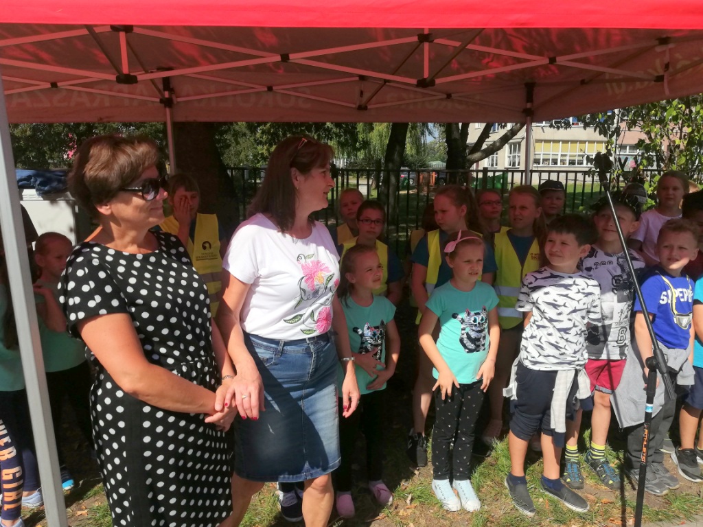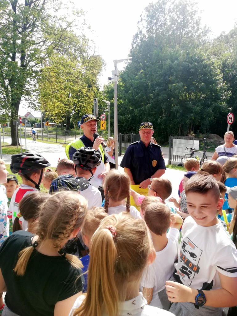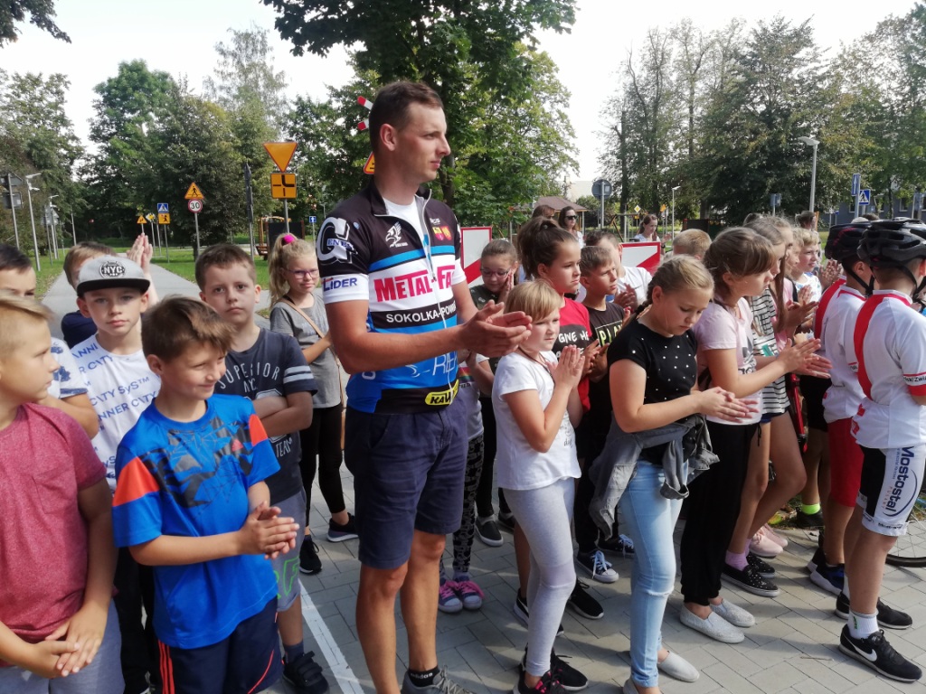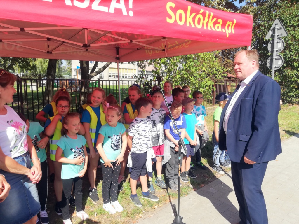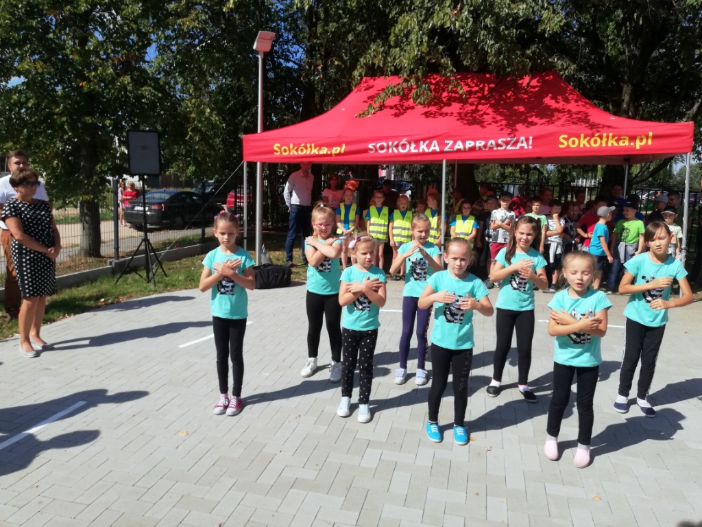 W dniu 5 września 2019 r. odbyła się uroczystość otwarcia Miasteczka Ruchu Drogowego. To zaniedbane nieco miejsce wygląda teraz naprawdę imponująco. Na placu zamontowano znaki drogowe, namalowano oznakowanie na jezdni, a nawet postawiono sygnalizację świetlną. Inwestycję oficjalne otworzyła pani burmistrz Sokółki Ewa Kulikowska, w towarzystwie wielu gości: marszałka województwa podlaskiego Artura Kosickiego, posła Mieczysława Baszki, zastępców Burmistrza panów Adama Kowalczuka i Adama Juchnik, radnych oraz pracowników Urzędu Miasta. W uroczystości aktywny udział brali uczniowie naszej szkoły. Dziewczynki z grupy tanecznej „Rytm” zaprezentowały się w układach tanecznych, dzieci z klasy drugiej zaśpiewały piosenkę o ruchu drogowym, zaś starsza młodzież nie tylko dzielnie kibicowała kolegom z Kółka Kolarskiego, ale też znakomicie wypadła w quzie wiedzy o ruchu drogowym.