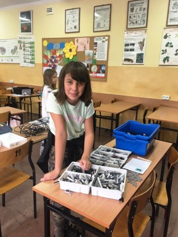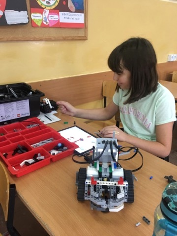 Uczniowie z klasy 4 i 5 biorą udział w zajęciach z z robotyki, na których budują i programują roboty. Pierwsze konstrukcje prawie gotowe!