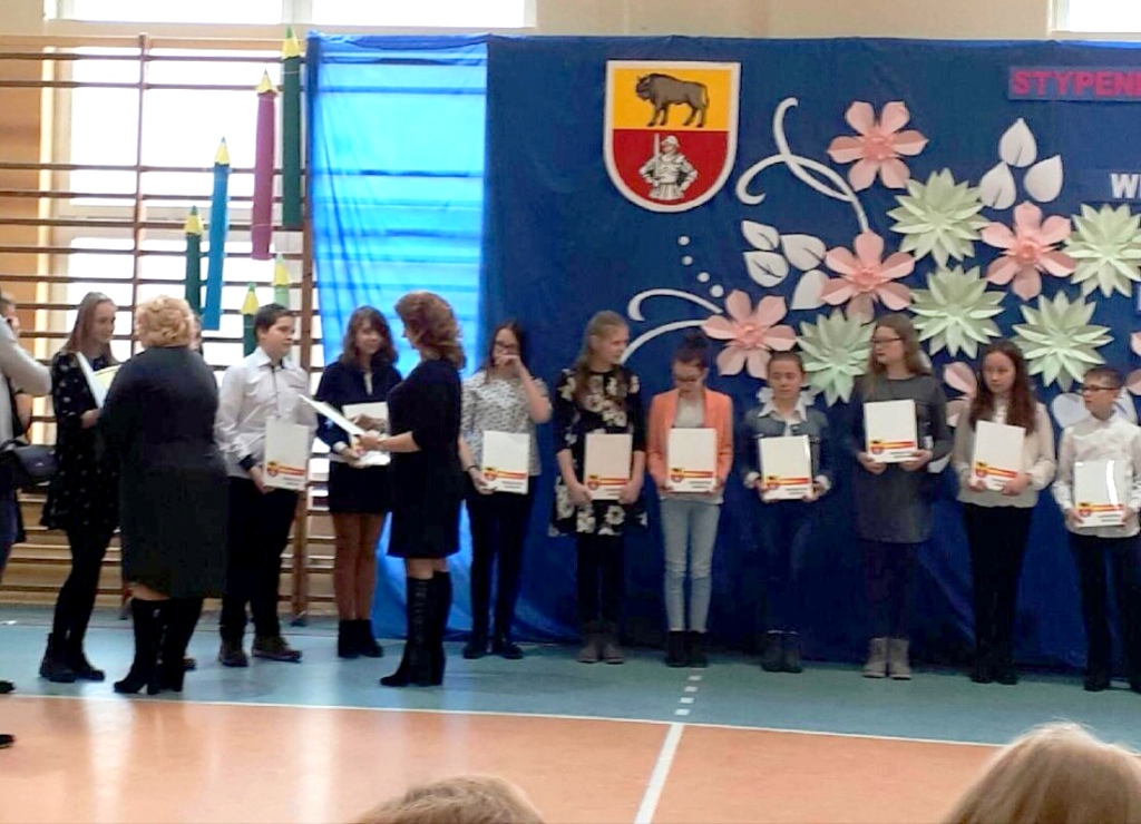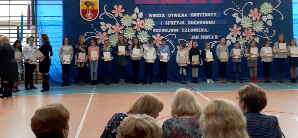 19 lutego gimnazjaliści i uczniowie szkół podstawowych z gminy Sokółka otrzymali nagrody burmistrz Sokółki. Na uroczystości nie zabrakło też przedstawicieli naszej szkoły. Nagrodzono 6 uczniów gimnazjum i 24 uczniów szkoły podstawowej. Aby otrzymać stypendium należało wykazać się wysoką średnią ocen z pierwszego semestru roku szkolnego 2017/2018 oraz wzorową oceną z zachowania. Gratulujemy nagrodzonym!