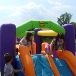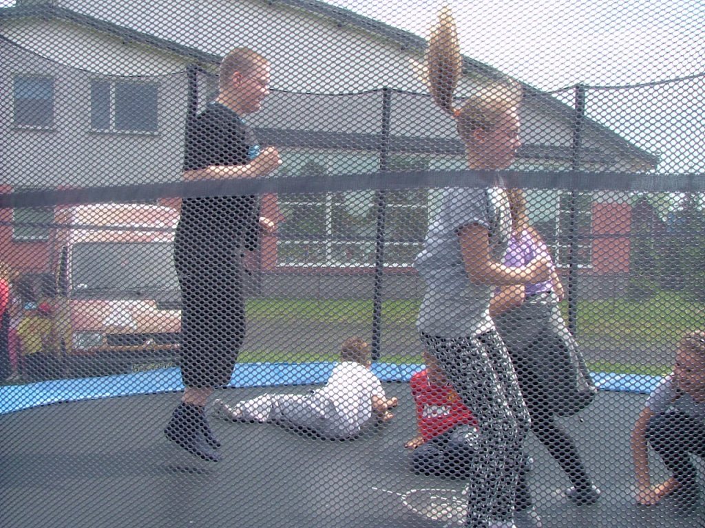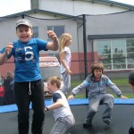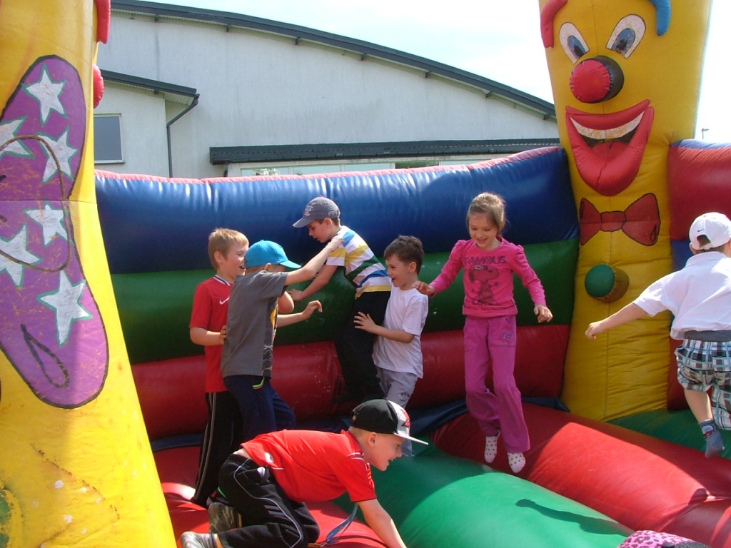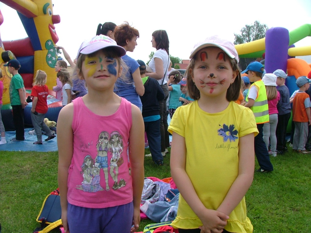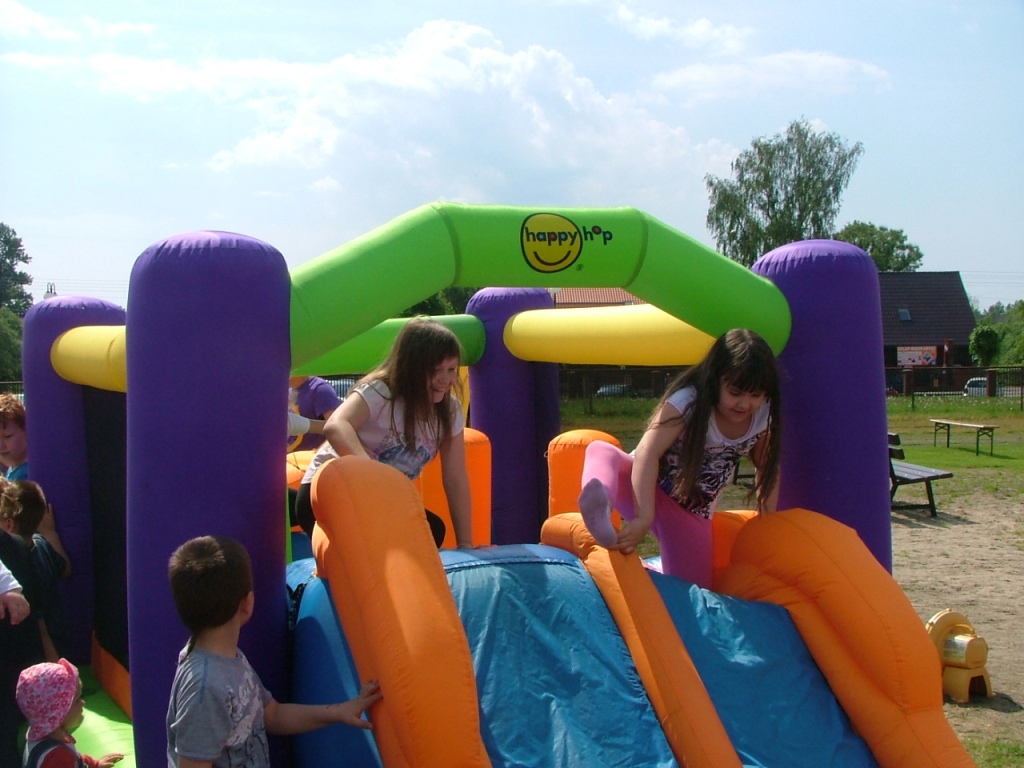 Najmłodsi mieszkańcy szkoły i dzielnicy mieli nie lada atrakcję w postaci trampoliny, dmuchanej zjeżdżalni i pałacyku-skoczni. W tym miejscu panował nieustanny ruch, dzieci aż piszczały z radości, a rodzice zapewne cieszyli się, że ich pociechy mogą bezpiecznie i atrakcyjnie spożytkować nieskończone zasoby energii. Dzieci bawiły się też na huśtawkach na placu zabaw. Mogły też zrobić „Bajkowy makijaż”