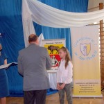 W dniu 9 kwietnia w Gimnazjum nr 1 odbył się finał Konkursu Poetyckiego o Janie Pawle II. W recytatorskich zmaganiach wzięło udział 39 młodych artystów, występujących w czterech kategoriach wiekowych. Miło nam poinformować, że uczennica naszej szkoły, Julia Szomko z klasy Va, zajęła I miejsce w kategorii szkół podstawowych za interpretację wiersza „Wołanie”. Na uroczystej gali odebrała nagrodę książkową i dyplom z rąk zastępcy burmistrza, pana Krzysztofa Szczebiota. Julce serdecznie gratulujemy i życzymy jeszcze wielu tak pięknych i udanych występów artystycznych.