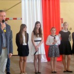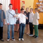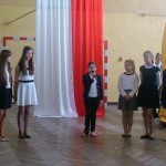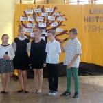 W dniu 30 kwietnia w naszej szkole odbyła się akademia z okazji rocznicy uchwalenia Konstytucji 3 maja. Przygotowały ja panie Katarzyna Daszuta, Ewa Dębko i Dorota Koprowska wraz z uczniami klas drugich gimnazjum, klasy Va i z Zespołem Muzycznym. Uroczystość miała formę lekcji historii, w czasie której starsi uczniowie opowiadali młodszym kolegom o ważnych wydarzeniach z naszej przeszłości, tłumaczyli trudne zwroty, takie jak „liberum veto”, przypomnieli postaci wielkich, polskich patriotów. Występowi towarzyszyła prezentacja multimedialna, występy solistów i Zespołu Muzycznego, recytacja wierszy. W nastrój zadumy wprowadzała też dekoracja w postaci drzewa z ważnymi datami z dziejów Polski. Dzięki takim uroczystościom i postawie młodego pokolenia rocznica ta była, jest i będzie obchodzona z dumą i świadomością jej znaczenia dla narodu polskiego.