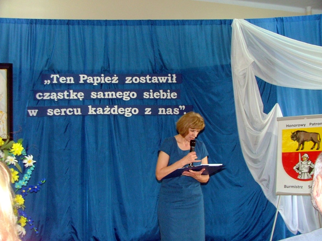 W dniu 9 kwietnia w Gimnazjum nr 1 odbył się finał Konkursu Poetyckiego o Janie Pawle II. W recytatorskich zmaganiach wzięło udział 39 młodych artystów, występujących w czterech kategoriach wiekowych. Miło nam poinformować, że uczennica naszej szkoły, Julia Szomko z klasy Va, zajęła I miejsce w kategorii szkół podstawowych za interpretację wiersza „Wołanie”. Na uroczystej gali odebrała nagrodę książkową i dyplom z rąk zastępcy burmistrza, pana Krzysztofa Szczebiota. Julce serdecznie gratulujemy i życzymy jeszcze wielu tak pięknych i udanych występów artystycznych.