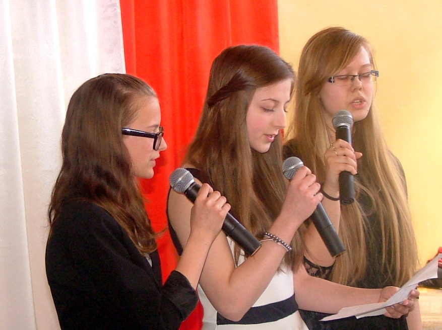Dnia 2 maja dwie uczennice z naszej szkoły – Martyna Kułak oraz Gabriela Fiedorec – wzięły udział w I Międzynarodowy Konkurs Piosenki Anglojęzycznej organizowanym w Dąbrowie Białostockiej. Do konkursu przystąpiło 33 uczestników ze szkół gimnazjalnych oraz średnich z powiatu sokólskiego i augustowskiego a także uczniowie ze szkół na Litwie (Kalwaria) i Białorusi (Mołodeczno). Wykonawcy prezentowali znane utwory muzyczne na scenie kina „Lotos”. Martyna zaśpiewała utwór Beyonce „Ave Maria” natomiast Gabrysia wystąpiła z piosenką „Somebody” (Bonnie Mckee). Wśród juru zasiedli muzycy m.in. p. Jerzy Tomzik oraz językowcy a także goście zza granicy (Armenia). Dziewczynom gratulujemy występów oraz życzymy dalszych sukcesów.