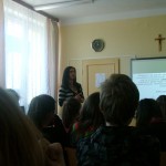 Dnia 12.03.14r. odbyło się spotkanie uczniów klas pierwszych gimnzjum z dietetykiem, panią Karoliną Bogusz na temat ,,Jak zdrowo i racjonalnie się odżywiać będąc nastolatkiem?”. Pani dietetyk przygotowała ciekawy wykład połączony z prezentacją multimedialną na temat zasad zdrowego odżywiania oraz wyczerpująco odpowiadała na zadawane przez młodzież pytania. W podziękowaniu za spotkanie uczniowie wręczyli pani dietetyk ,,kosz witamin” wypełniony owocami. Pomysł i organizacja spotkania – wychowawcy klas I: Alina Jakimiec i Katarzyna Chociej.
