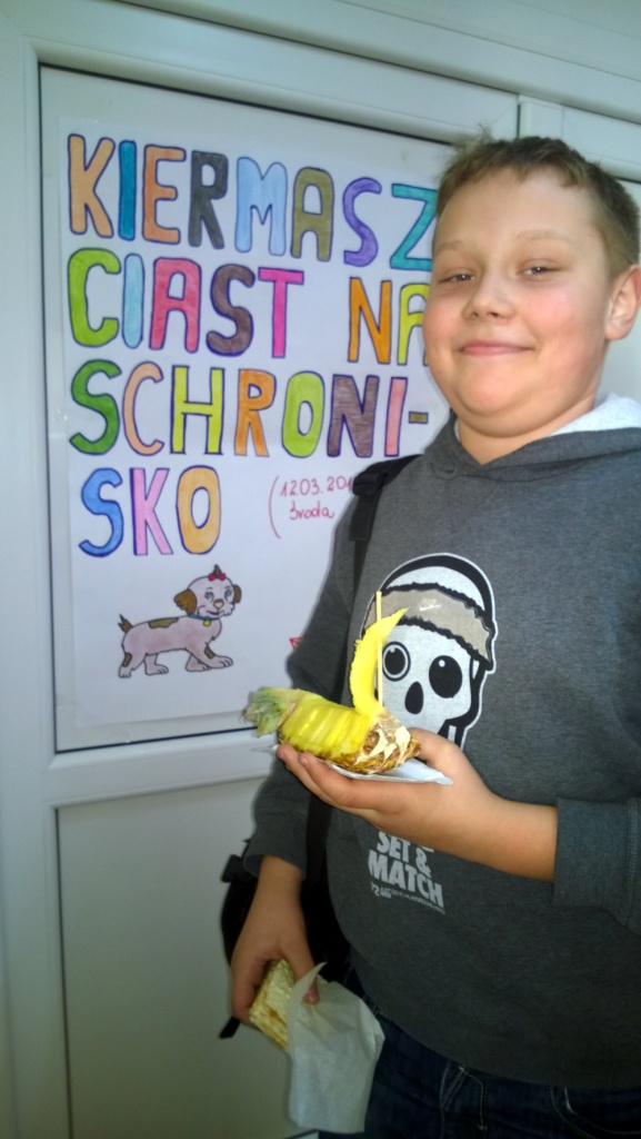Dnia 12 marca 2014 r. Szkolne Koło Wolontariatu pod opieką p. Moniki Klim i p. Małgorzaty Chociej zorganizowały kiermasz ciast, którego celem było zebranie jak największej ilości pieniędzy na leczenie psów z sokólskiego schroniska. Ciasta piekli uczniowie klas gimnazjalnych należący do Szkolnego Koła Wolontariatu oraz opiekunowie.