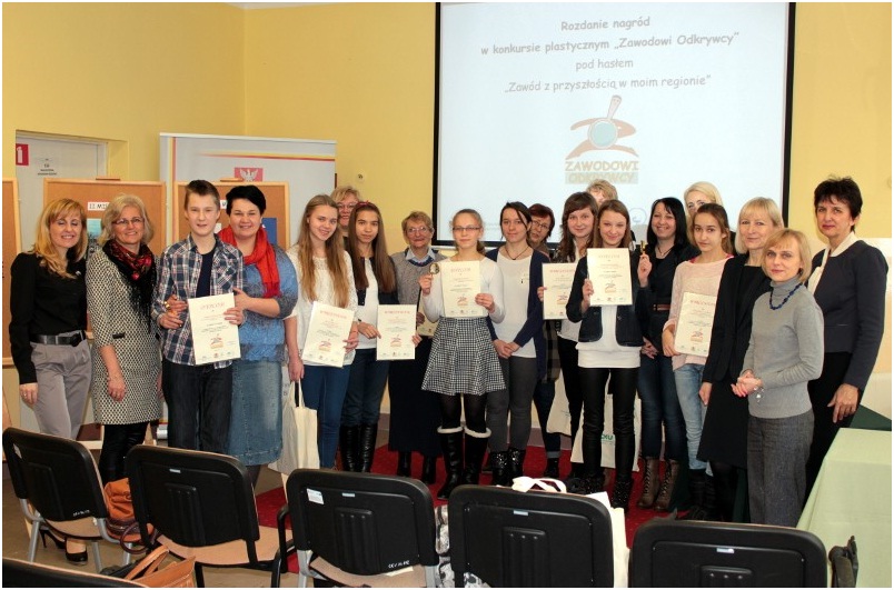 Lokalne Centrum Doradztwa Zawodowego w Białymstoku zorganizowało konkurs „Zawodowi odkrywcy”, przeznaczony dla uczniów kończących szkołę podstawową w województwie podlaskim. Zadaniem uczestników było wykonanie pracy plastycznej dotyczącej zawodu już istniejącego na rynku pracy lub takiego, jakiego jeszcze nie ma. Chodziło o to, by pobudzić młodych ludzi do myślenia na temat świata pracy i rozwinąć twórcze podejście do planowania edukacyjno- zawodowej przyszłości. Miło nam zakomunikować, że uczennica klasy VI naszej szkoły, Julia Borowska, otrzymała w tym konkursie wyróżnienie. Jury nagrodziło jej pomysłowość, mądre planowanie zawodowej kariery oraz dojrzałość, z jaką wyjaśniała, dlaczego strażnik graniczny jest zawodem przyszłości. Julkę do turniejowych zmagań przygotowała nauczycielka języka polskiego, pani Dorota Koprowska.