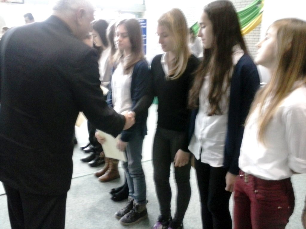 Dnia 18.03.2014 r odbyło się w Białymstoku uroczyste wręczenie zaświadczeń laureatom Wojewódzkiego Konkursu Przedmiotowego w roku szkolnym 2013/14. Z naszej szkoły tytuły te zdobyły uczennice klasy VI: Magdalena Tur (z j. polskiego) i Julia Borowska (z matematyki). Tym samym dziewczęta są zwolnione ze sprawdzianu na koniec klasy VI, a na zaświadczeniu o jego wynikach będą miały najwyższą liczbę punktów. Gratulacje!