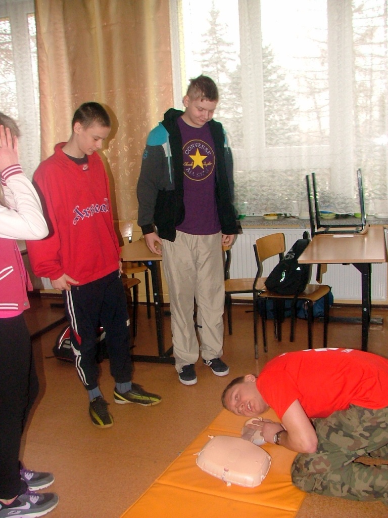 W Zespole Szkół Ogólnokształcących na Osiedlu Zielonym w Sokółce przywiązuje się dużą wagę do szkolenia dzieci i młodzieży z udzielania pierwszej pomocy przedmedycznej. Odpowiednią wiedzę na ten temat ma nie tylko nauczyciel uczący przedmiotu edukacja dla bezpieczeństwa, ale też panie z edukacji wczesnoszkolnej oraz wychowawcy świetlicy.Nauczyciele ukończyli odpowiednie kursy organizowane przez PCK oraz WOŚP, mają do dyspozycji fantomy, filmy szkoleniowe oraz inne materiały dydaktyczne. Czasami do współpracy zapraszane są osoby, które maja wiedzę i umiejętności ratownicze z racji wykonywanego zawodu, np. strażacy. 3 stycznia kurs ratowniczy z uczniami klasy szóstej przeprowadzili druhowie z Harcerskiego Klubu Ratowniczego działającego przy Komendzie Hufca ZHP w Sokółce. Spotkanie obejmowało część teoretyczną oraz praktyczne ćwiczenia resuscytacji krążeniowo-oddechowej. Harcerze uczyli młodszych kolegów czym jest łańcuch przeżycia, jak sprawdzić przytomność poszkodowanego i prawidłowo wykonać masaż serca. W najbliższym czasie taki kurs jest też przewidziany dla dzieci z klas początkowych.