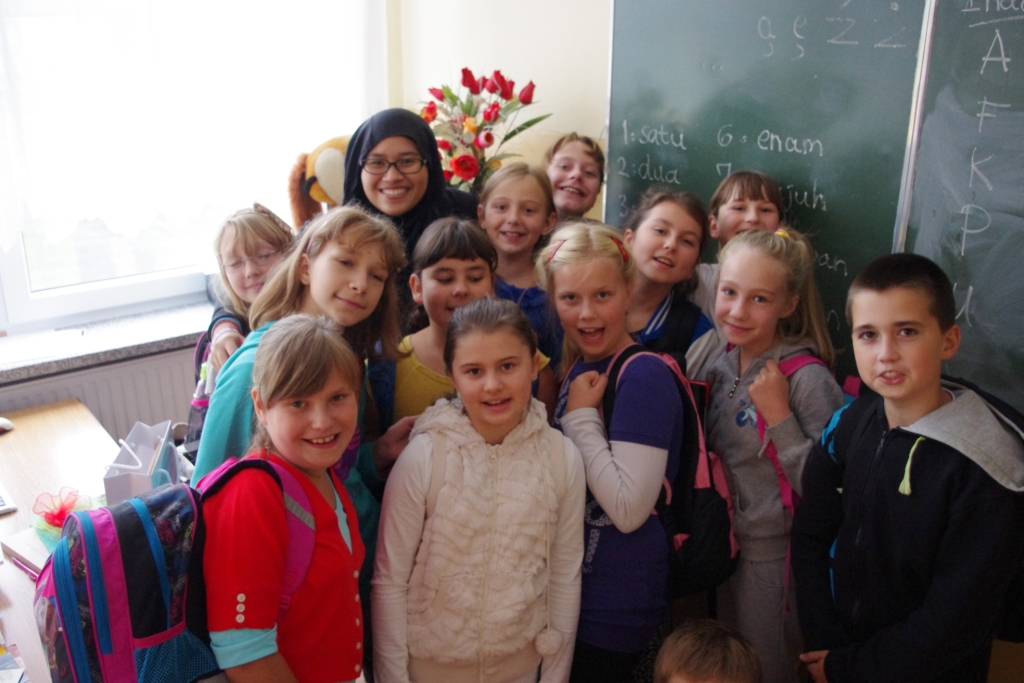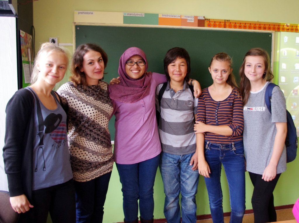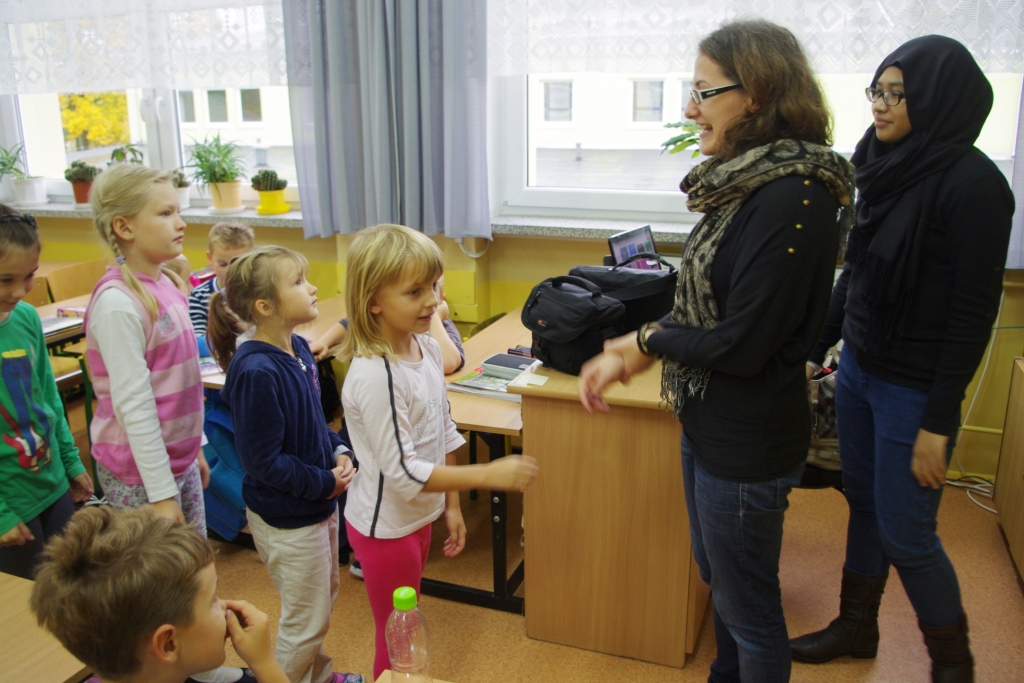 W dniach od 9 do 20 września w Zespole Szkół Ogólokształcących na Osiedlu Zielonym gościły studentki reprezentujące jedną z największych międzynarodowych organizacji studenckich AIESEC. To stowarzyszenie umożliwia swoim członkom poszerzanie wiedzy i umiejętności oraz przybliża im różnorodne problemy współczesnego świata m.in. poprzez praktyki zagraniczne. W Sokółce gościły dwie osoby: Mariya Antonowa z Bułgarii i Nur Fitriani Khairunnisa z Indonezji, posługująca się zdrobnieniem Dede. Studentki realizowały zadania związane z programem „Enjoy my origin”. Celem tego programu jest pokazanie uczniom ze szkół podstawowych i gimnazjów, że naprawdę warto uczyć się języka angielskiego. Poprzez interaktywne warsztaty praktykantki nie tylko ćwiczyły z młodzieżą słówka i gramatykę, ale też pokazały kulturę swoich krajów w takich aspektach jak pogoda, historia, jedzenie, środowisko, architektura, język i podróże. Uczniom takie zajęcia bardzo się podobały. Gospodarze – nauczyciele języka angielskiego, zadbali o to, by Mariya i Dede poznały nasze miasto i okolice, a sokólszczyzna położona na „szlaku czterech kultur” zrobiła na wolontariuszkach duże wrażenie.