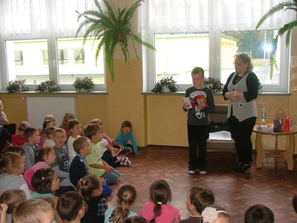 W dniu 19 września dzieci z klas początkowych wzięły udział w autorskim spotkaniu z poetką, sokółczanką, panią Barbarą Chomko. Pisarka należy do Stowarzyszenia Autorów Polskich, a spod jej pióra wyszły takie tomiki poezji „Kącikowe rozmyślania” czy „Wierszowana książeczka-przyjacielem dziecka” oraz opowiadania, bajki, pieśni religijne i psalmy. Pani Chomko opowiedziała krótko z czego czerpie inspiracje, o swoim niezwykłym dzieciństwie, życiu osobistym i artystycznym dorobku. Następnie poetka czytała swoją poezję- częściowo sama, a trochę z pomocą chętnych dzieci. Młodzi odbiorcy docenili błyskotliwe, pełne humoru i dystansu do otaczającego świata wiersze. Spotkaniu towarzyszyła wystawa prac plastycznych, które najmłodsi uczniowie ZSO wykonali jako ilustracje do utworów pani Barbary.
