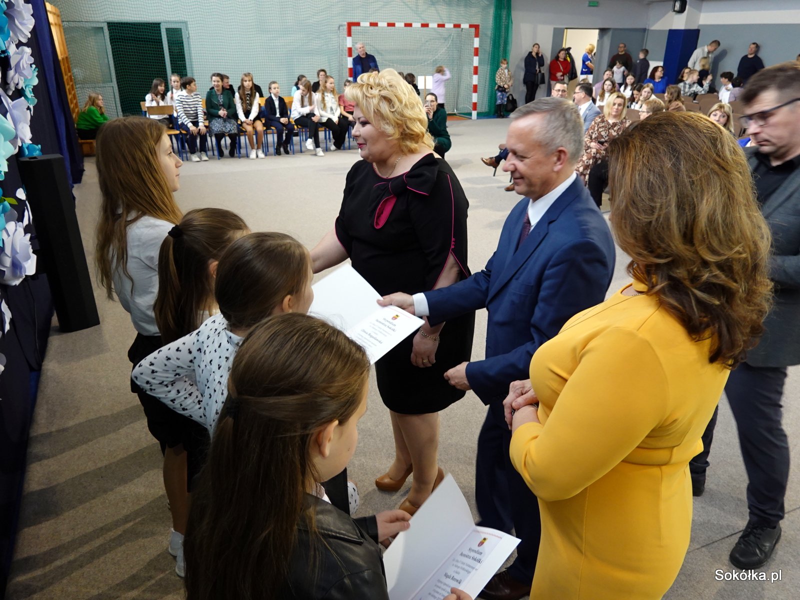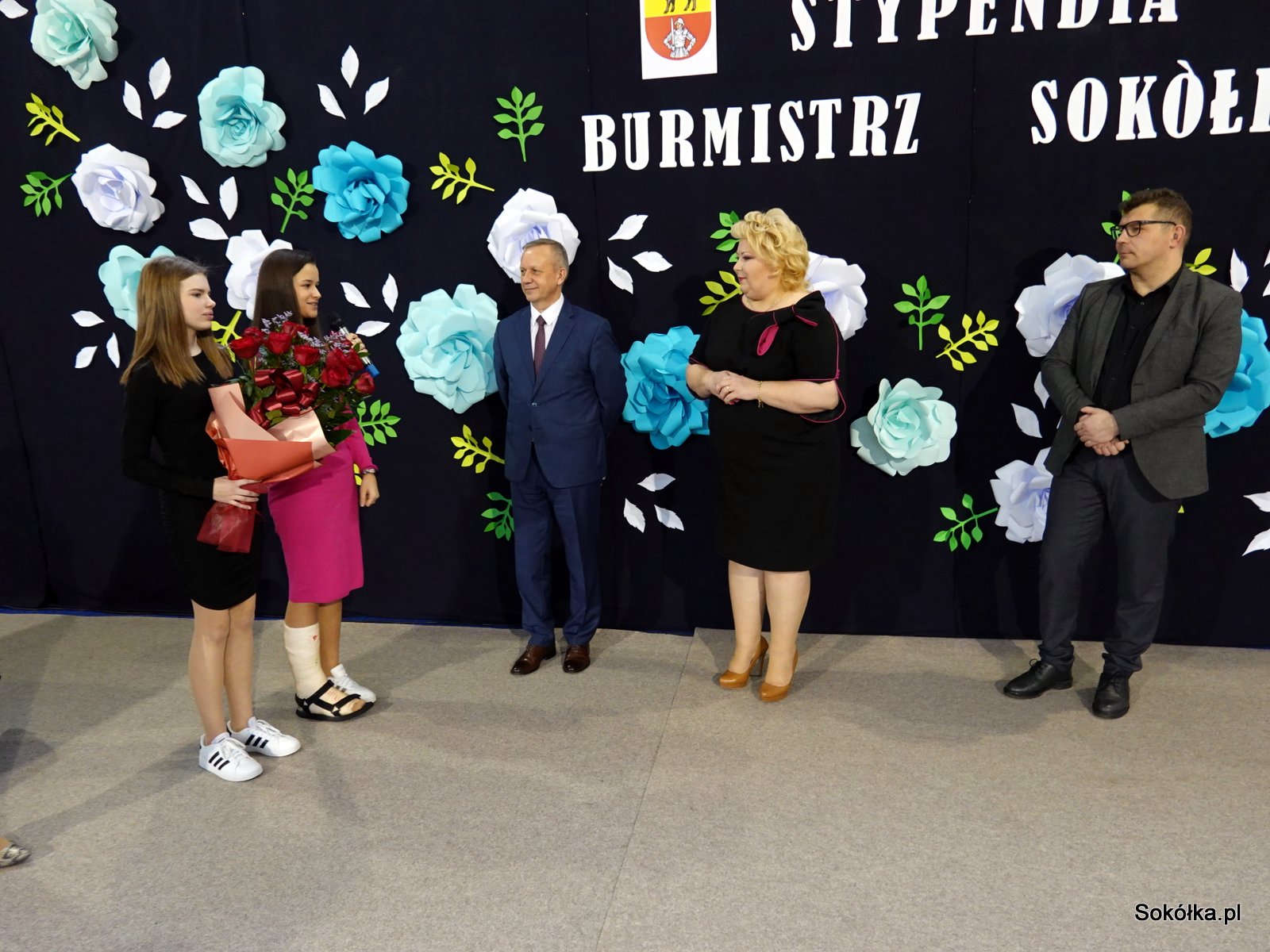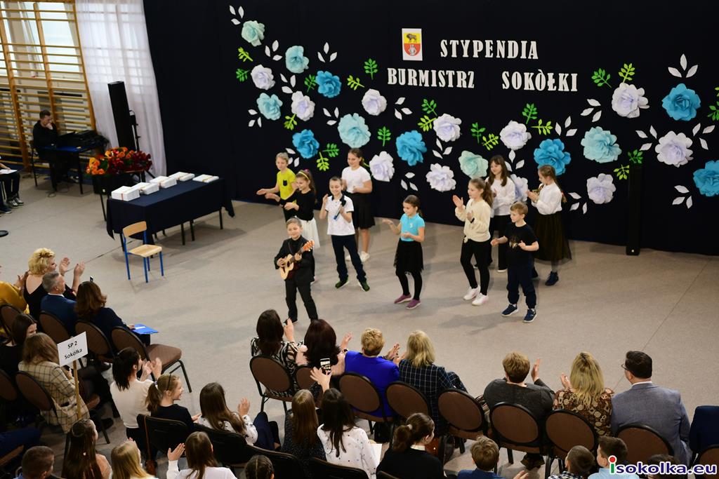Dziś w naszej szkole odbyło się uroczyste wręczenie stypendiów naukowych, za wybitne wyniki w nauce za I semestr 2022/2023, ufundowanych przez Burmistrz Sokółki Ewę Kulikowską. W uroczystości wzięli udział Zastępcy Burmistrza Sokółki Adam Kowalczuk i Adam Juchnik, pracownice Referatu Oświaty, dyrektorzy szkół, nauczyciele i rodzice. Najlepsi uczniowie, wytypowani z poszczególnych szkół miasta i gminy zostali uhonorowani nagrodami, wśród nich 21 osobowa grupa z naszej szkoły. W części artystycznej zaprezentował się chór szkolny pod batutą p. Iwony Słoma, oraz zespół taneczny prowadzony przez p. Barbarę Chancewicz.