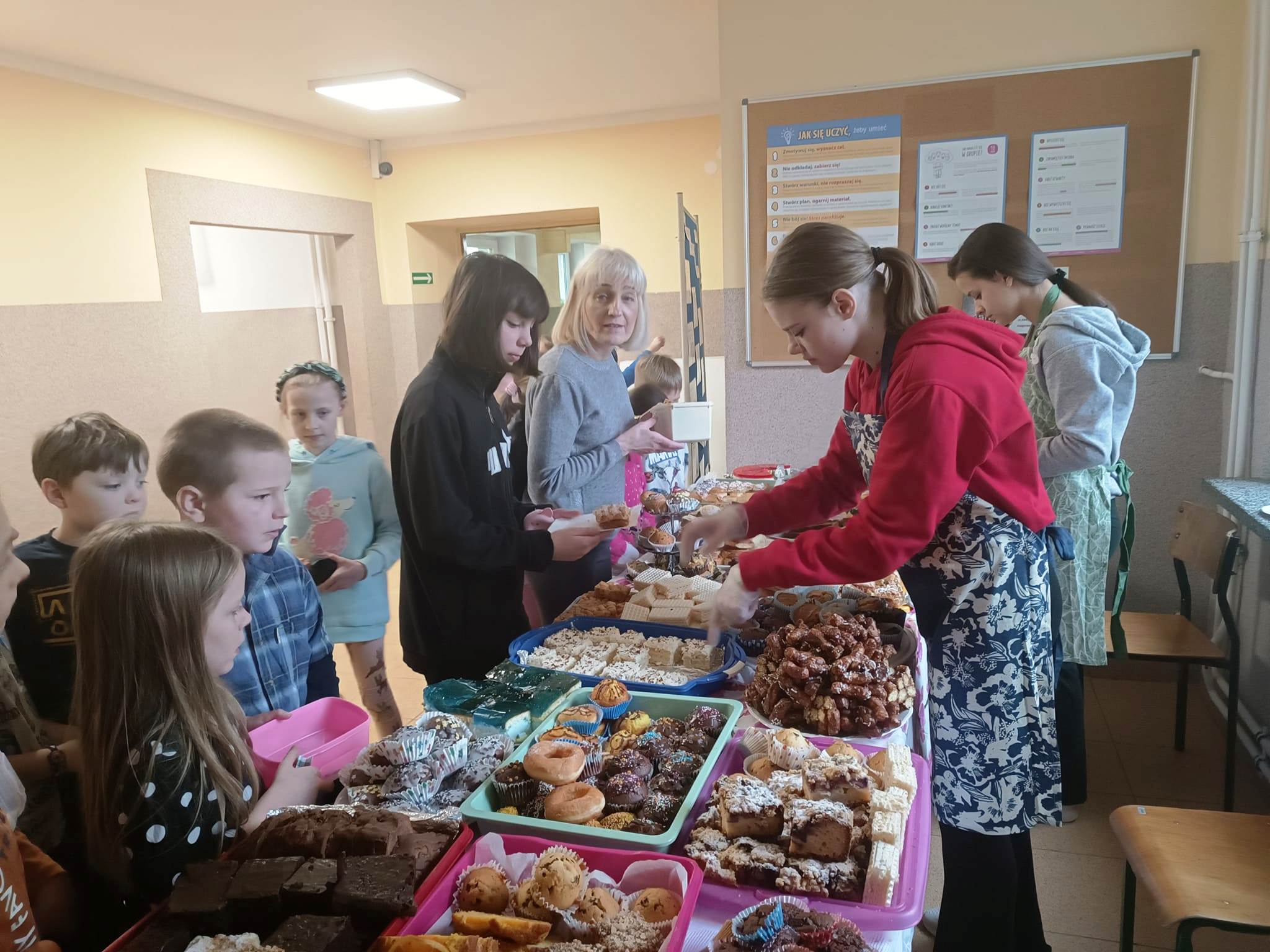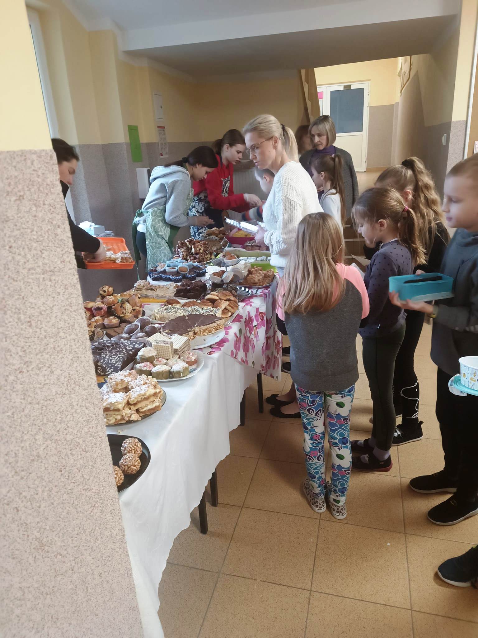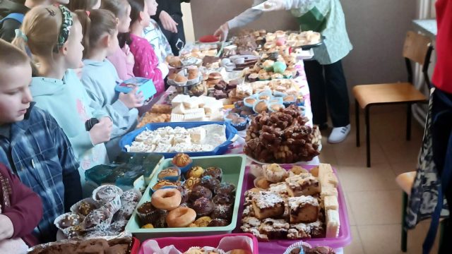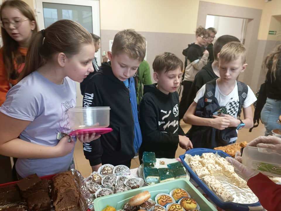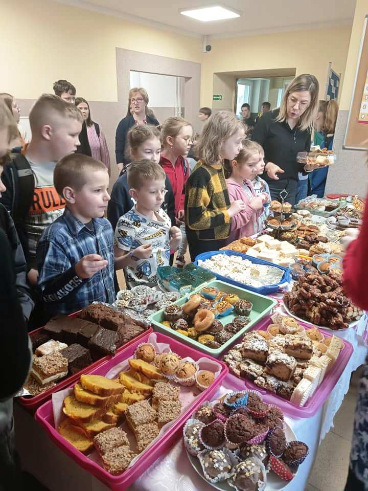 Za symboliczną kwotę można było nabyć przeróżne ciasta i babeczki. Wypieki sprzedawane były na przerwach, a wybierać było w czym. Akcja odniosła ogromny sukces. Rodzice, pracownicy szkoły i uczniowie chętnie kupowali nasze słodkości.