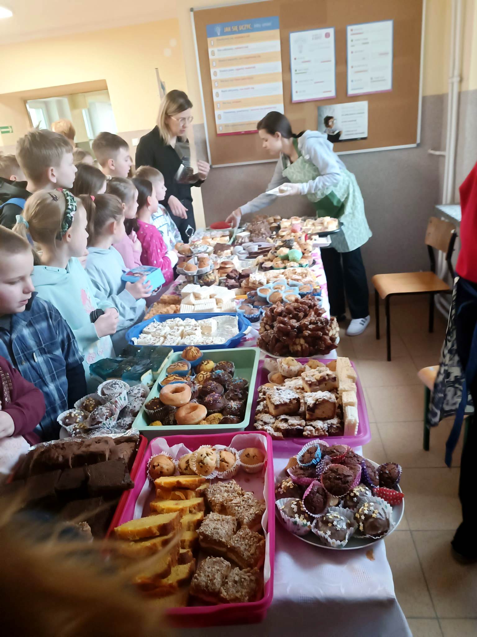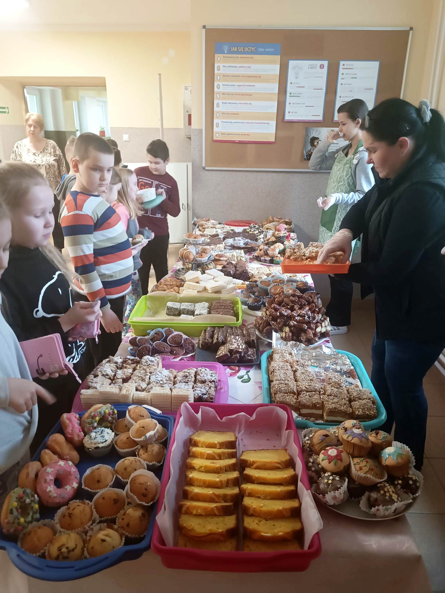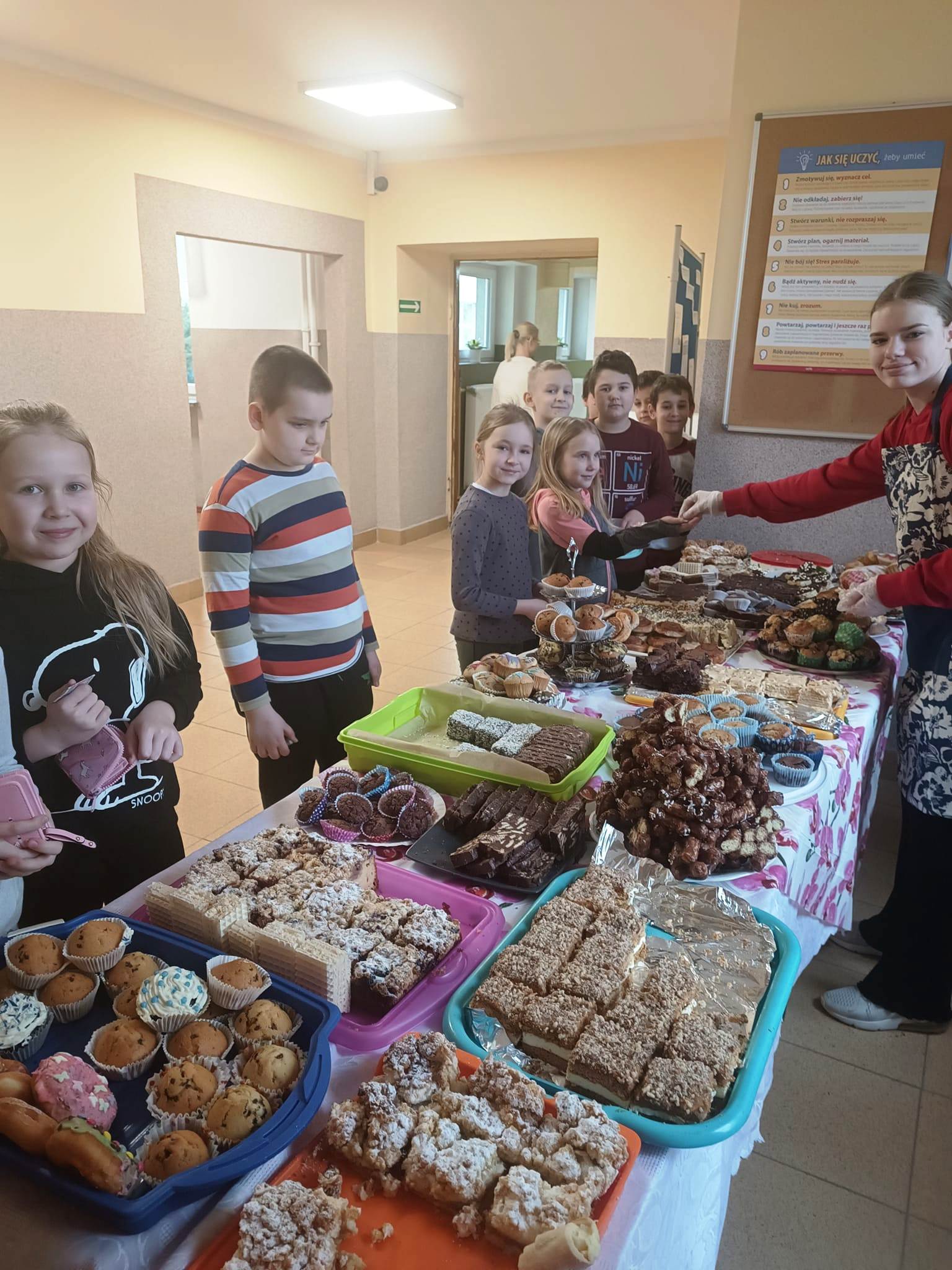 Za symboliczną kwotę można było nabyć przeróżne ciasta i babeczki. Wypieki sprzedawane były na przerwach, a wybierać było w czym. Akcja odniosła ogromny sukces. Rodzice, pracownicy szkoły i uczniowie chętnie kupowali nasze słodkości.