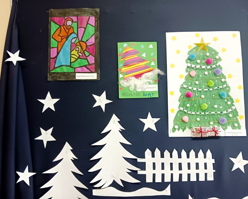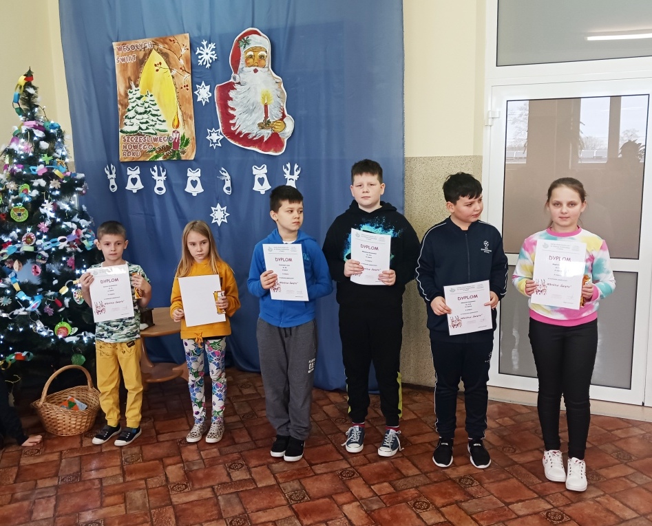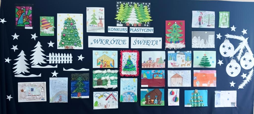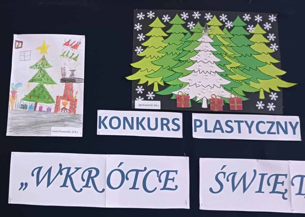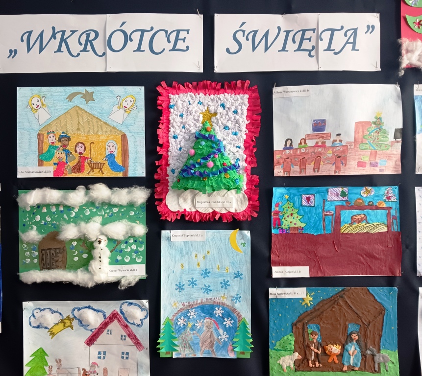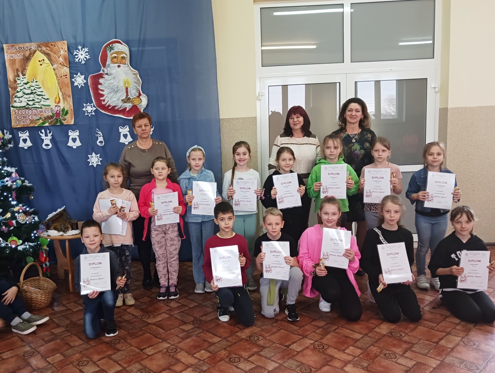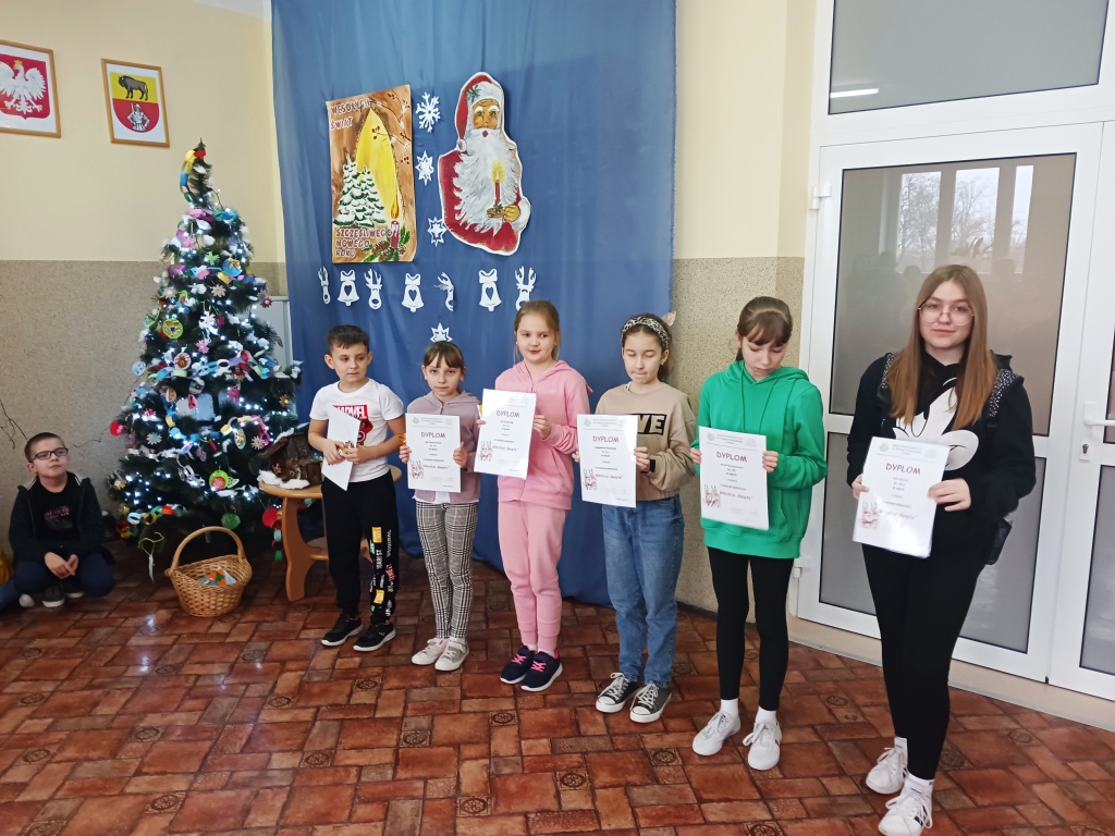 Dnia 04.01.2023 roku został rozstrzygnięty konkurs plastyczny „Wkrótce Święta” o tematyce Świąt Bożego Narodzenia. Uczestnicy konkursu otrzymali dyplomy i słodkie upominki. Prace uczniów były samodzielne, wykonane ciekawą techniką, przedstawiały zwyczaje i tradycje Świąt Bożego Narodzenia.