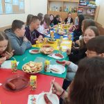 Dnia 19 maja naszą szkołę odwiedzili uczniowie Specjalnego Ośrodka Szkolno Wychowawczego w Sokółce oraz uczniowie z Litwy, którzy przyjechali do Sokółki w ramach Polsko – Litewskiego Funduszu Wymiany Młodzieży. Towarzyszyły im koordynatorki tego projektu, Pani Zuzanna Szarkowska – Czeczko oraz Pani Urszula Drewniak. Goście spotkali się z klasą 1 b wraz z wychowawczynią p. Anną Bajeńską. Spotkanie przebiegło w niezwykle ciepłej i przyjaznej atmosferze. Przyjęliśmy naszych gości pięknym uśmiechem oraz kolorowymi kartkami, które uczniowie klasy pierwszej własnoręcznie przygotowali, aby podziękować swoim nowo poznanym kolegom, koleżankom oraz Paniom, za spotkanie oraz wspólnie spędzony czas. Dowiedzieliśmy się, jaki jest cel realizowanego projektu. Otrzymaliśmy w prezencie materiały do wykorzystania na zajęciach. Są to przedmioty wydrukowane przez wychowanków w drukarce 3D oraz zdjęcia przez nich wykonane, które następnie za pomocą aplikacji zostały przekształcone w kolorowankę. Wszyscy wyszliśmy z tego spotkania bogatsi o nowe doświadczenia oraz znajomości. Serdecznie dziękujemy za wspólnie spędzony czas.