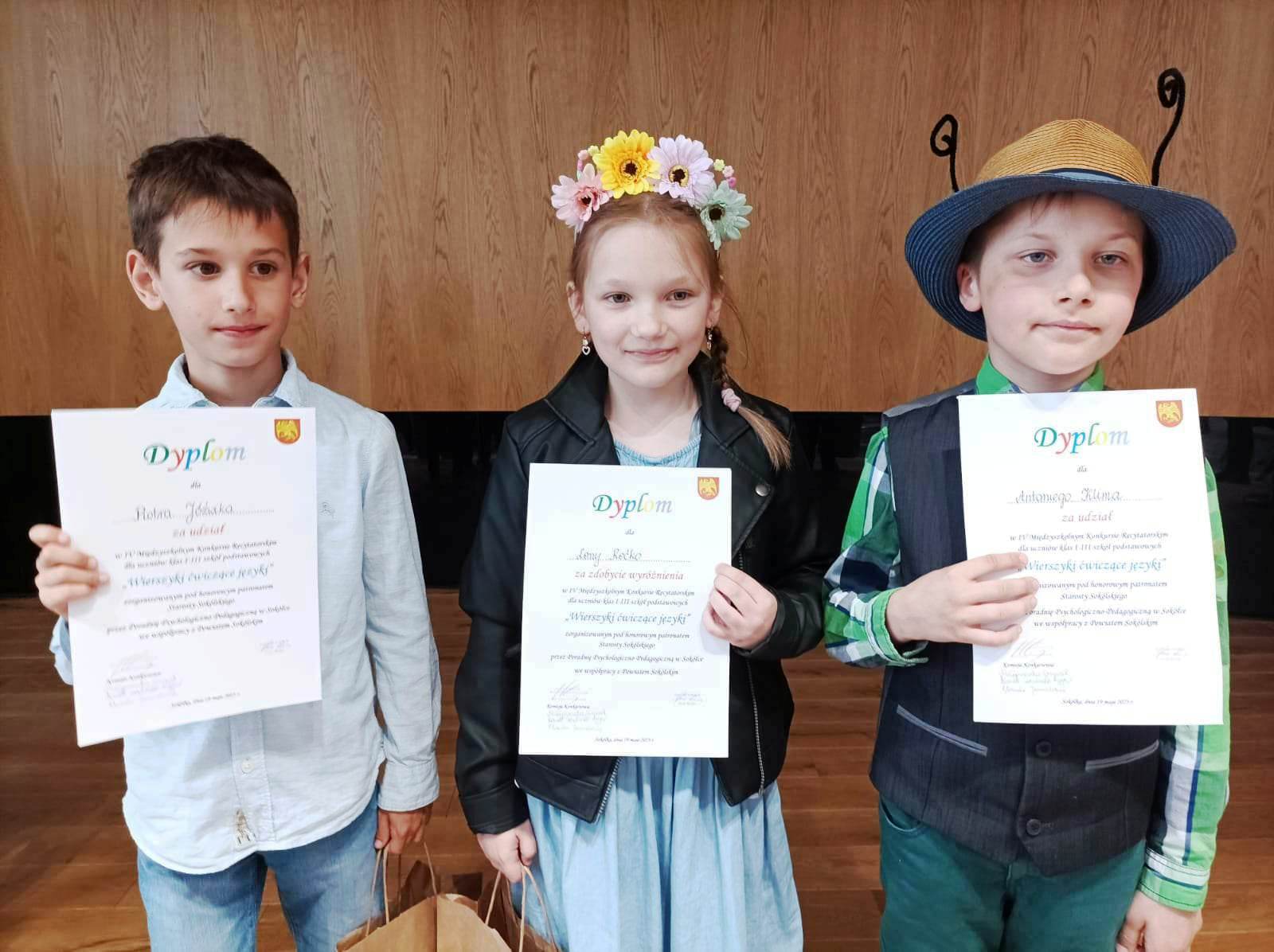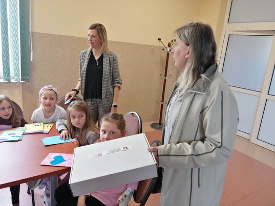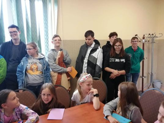 Dnia 19 maja naszą szkołę odwiedzili uczniowie Specjalnego Ośrodka Szkolno Wychowawczego w Sokółce oraz uczniowie z Litwy, którzy przyjechali do Sokółki w ramach Polsko – Litewskiego Funduszu Wymiany Młodzieży. Towarzyszyły im koordynatorki tego projektu, Pani Zuzanna Szarkowska – Czeczko oraz Pani Urszula Drewniak. Goście spotkali się z klasą 1 b wraz z wychowawczynią p. Anną Bajeńską. Spotkanie przebiegło w niezwykle ciepłej i przyjaznej atmosferze. Przyjęliśmy naszych gości pięknym uśmiechem oraz kolorowymi kartkami, które uczniowie klasy pierwszej własnoręcznie przygotowali, aby podziękować swoim nowo poznanym kolegom, koleżankom oraz Paniom, za spotkanie oraz wspólnie spędzony czas. Dowiedzieliśmy się, jaki jest cel realizowanego projektu. Otrzymaliśmy w prezencie materiały do wykorzystania na zajęciach. Są to przedmioty wydrukowane przez wychowanków w drukarce 3D oraz zdjęcia przez nich wykonane, które następnie za pomocą aplikacji zostały przekształcone w kolorowankę. Wszyscy wyszliśmy z tego spotkania bogatsi o nowe doświadczenia oraz znajomości. Serdecznie dziękujemy za wspólnie spędzony czas.