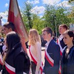 Poczet sztandarowy naszej szkoły podczas gminnych obchodów rocznicy Konstytucji 3 Maja – 3 maja 2023 r.