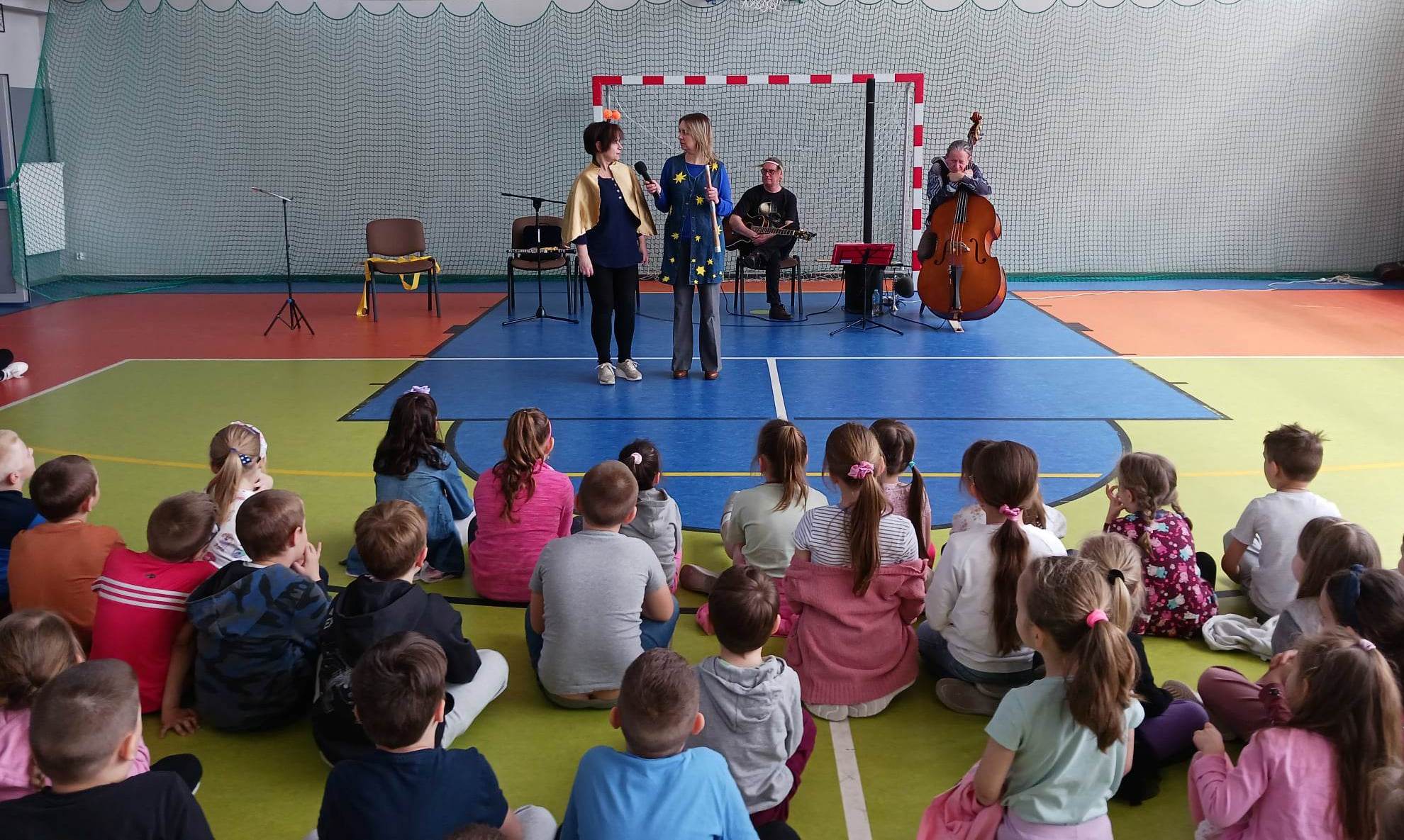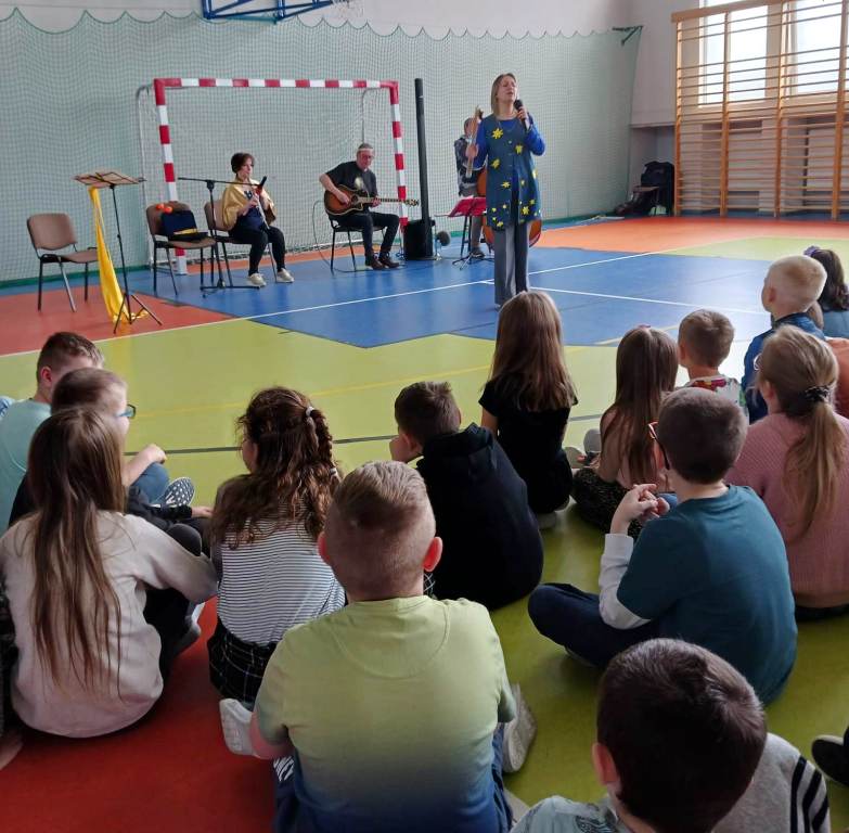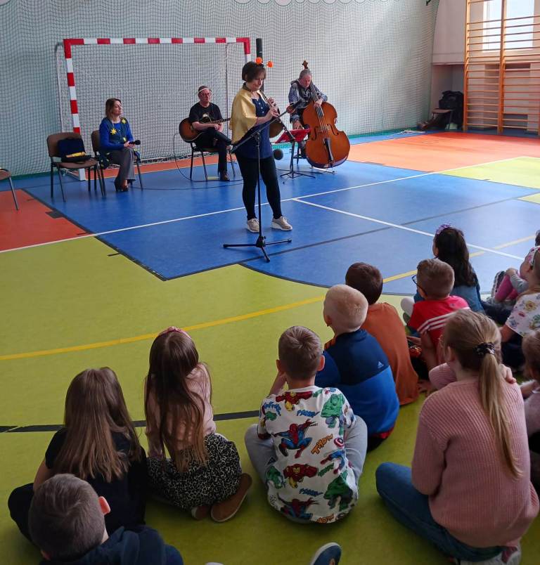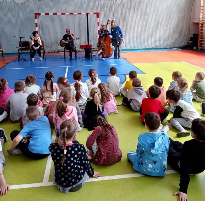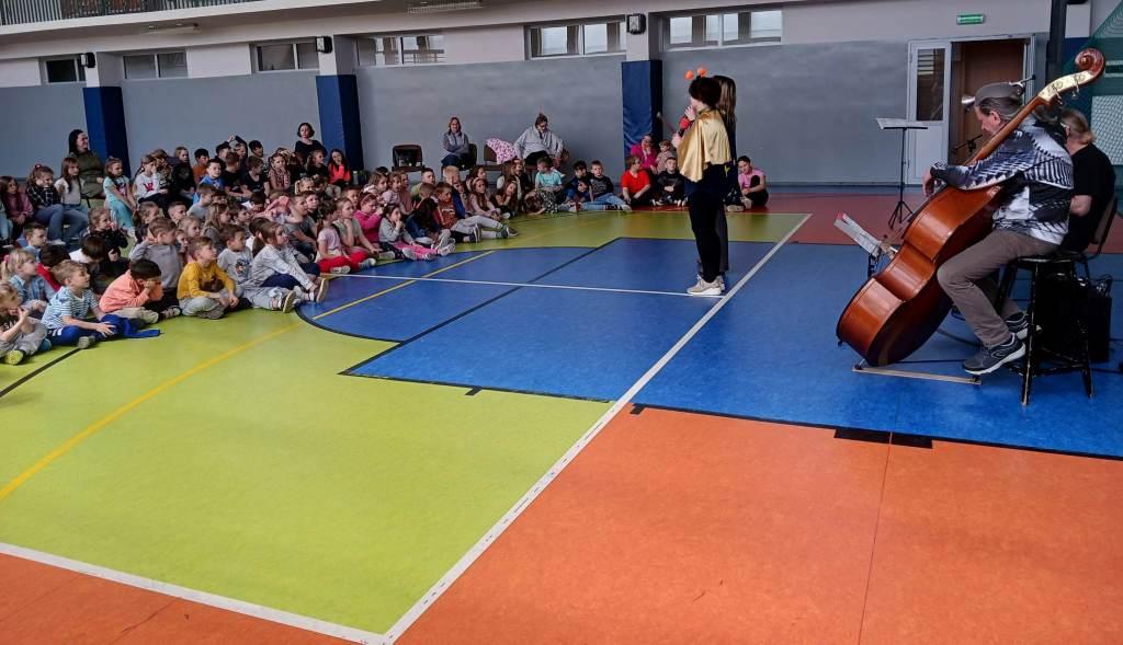 27 kwietnia 2023 r. gościliśmy artystów z Arte-Muza Białystok, którzy zaprezentowali nam audycję muzyczną pod tytułem „Kosmiczne piosenki”. Młodzi słuchacze czynnie brali udział w przedstawieniu. Zapoznali się z takimi pojęciami jak: staccato, legato, piano, forte.