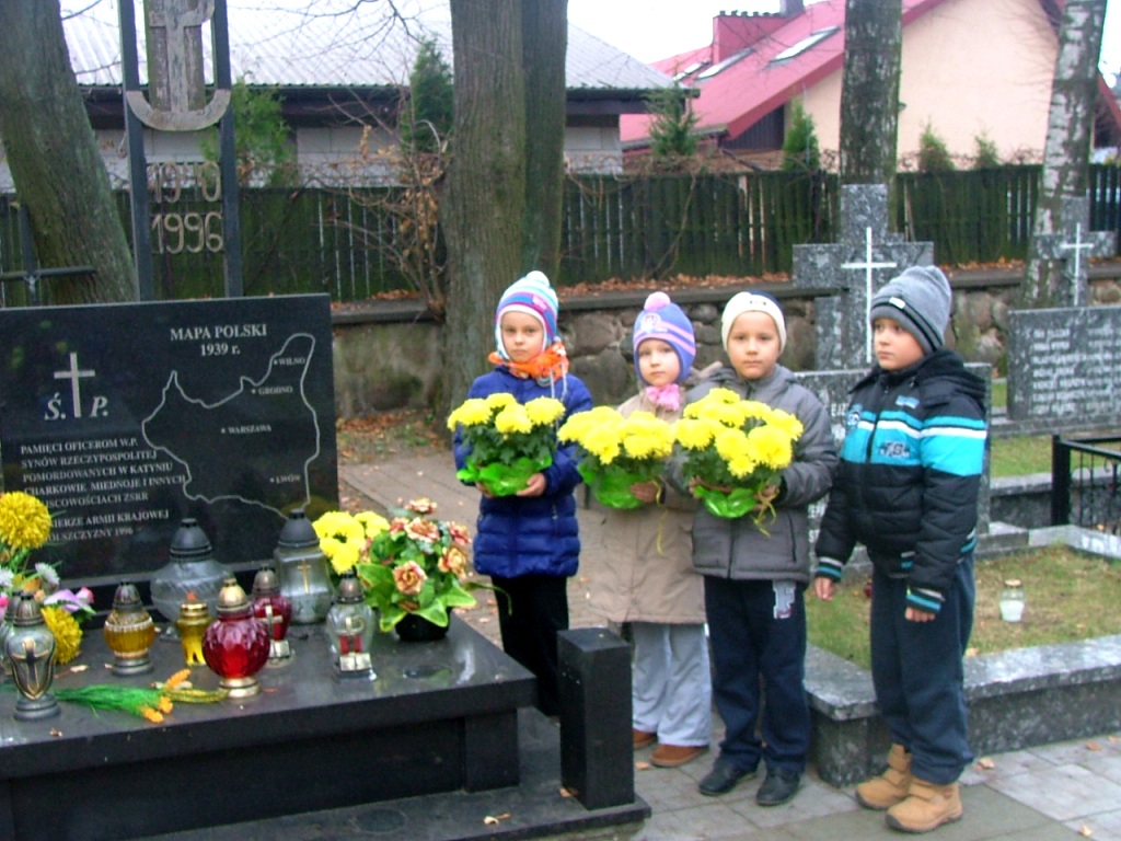 Uczniowie z klas pierwszych ZSO na Osiedlu Zielonym wraz z wychowawczyniami dzień przed Świętem Zmarłych odwiedzili cmentarz przy kościele Św. Antoniego w Sokółce. W jego najstarszej części znajdują się kwatery żołnierzy poległych w czasie wojny polsko-bolszewickiej 1920 r. Dzieci zapaliły znicze na grobach i przystroiły je kwiatami, pozostawiając swój ślad pamięci o miejscu, które jest głosem historii z tego tragicznego okresu. Pierwszaki były też pod pomnikiem ks. Jerzego Popiełuszki oraz pod monumentem upamiętniającym zbrodnię katyńską. Są zbyt małe, by rozumieć zawiłości historii, ale wystarczające dojrzałe do nauki patriotyzmu i poszanowania przeszłości – Polakami jesteśmy przecież wszyscy od urodzenia.