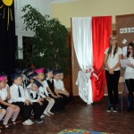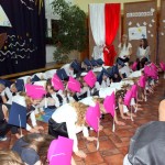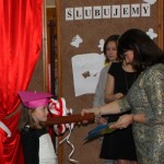 W dniu 29 października w naszej szkole odbyła się uroczystość Pasowania na Ucznia. Pierwszaki przygotowywały się do tego ceremoniału od początku roku szkolnego, poprzez naukę wierszyków, słów piosenek, tańca, tekstów w języku angielskim. Tego popołudnia panowała niezwykle uroczysta atmosfera, którą podkreślał nie tylko galowy strój uczniów, ale też obecność wielu ważnych gości: pana burmistrza Adama Kowalczuka, pani dyrektor Anny Andrzejewskiej i pani Marii Zaulicznej, wychowawczyń z przedszkola, przedstawicieli Rady Pedagogicznej, opiekunów Samorządu Uczniowskiego, rodziców. Motywem przewodnim scenografii, autorstwa pani Jolanty Paruk, był żaglowiec „Marzyciel”, napędzany wiatrem piątek i szóstek, którym dzieci popłynęły przez oceany wiedzy i świat wyobraźni. Chociaż część artystyczna wypadła znakomicie, to pretendenci do miana ucznia musieli na koniec wypić Napój Shreka – magiczna miksturę mocy, składającą się z różnych tajemniczych substancji, zapewniających powodzenie w szkole. Kolejną niespodzianką było to, że aktu pasowania dostąpiły nie tylko dzieci, ale i …pan Burmistrz. Pan Adam Kowalczuk został pasowany na Przyjaciela Szkoły i z tego powodu musiał bez skrzywienia się wypić sok z cytryny. Na koniec nie zabrakło życzeń od nauczycieli, młodzieży z Samorządu Uczniowskiego, rodziców. Miłym akcentem było wręczeniem nowo mianowanym żaczkom drobnych upominków w postaci gadżetów, słodkości i książeczek do kącika czytelniczego. Uroczystość zakończył słodki poczęstunek i zabawy prowadzone przez dziewczęta z Samorządu Szkolnego.