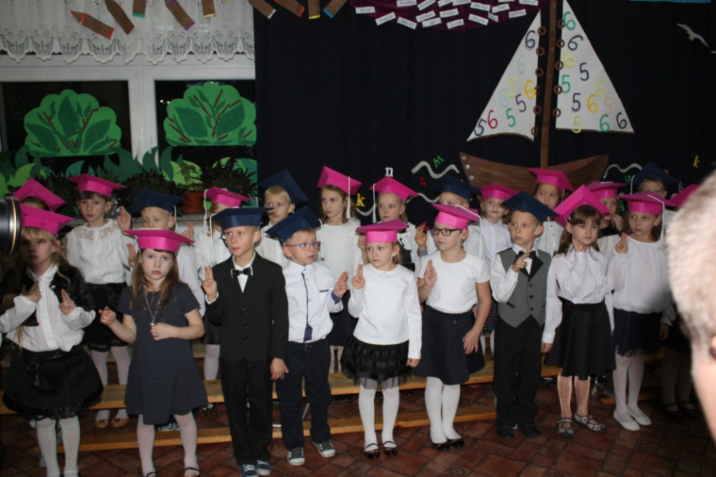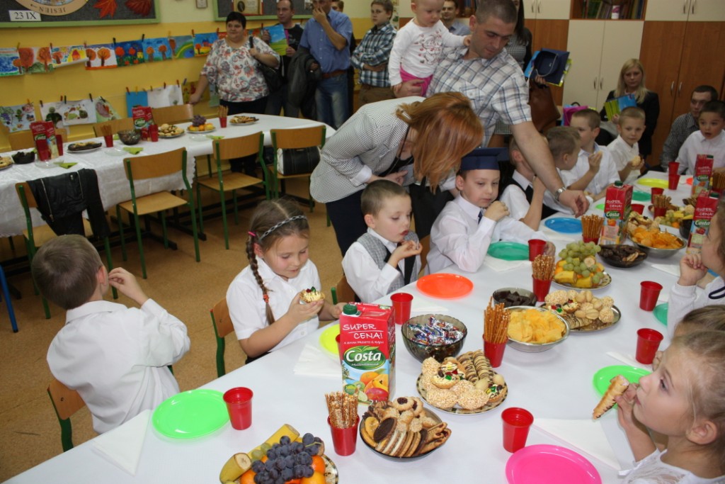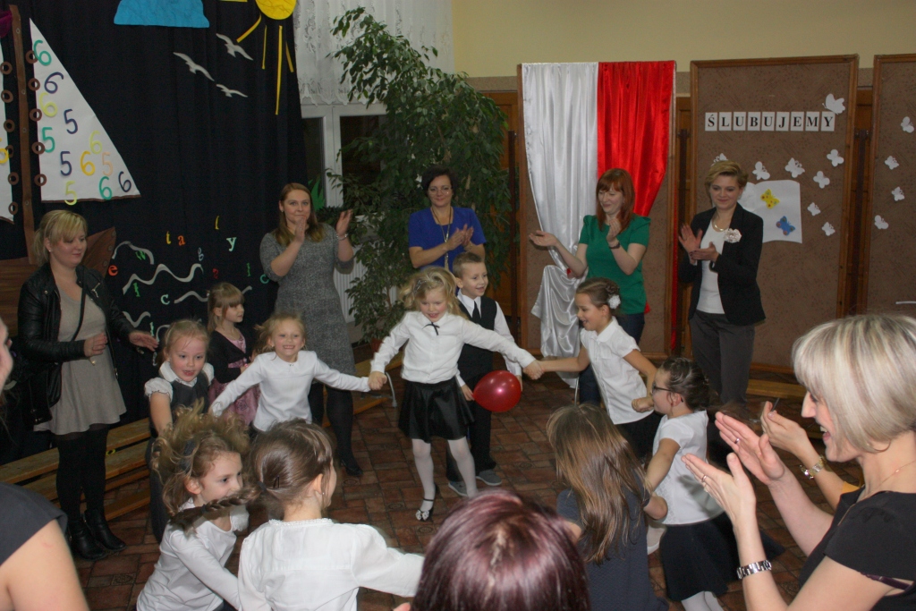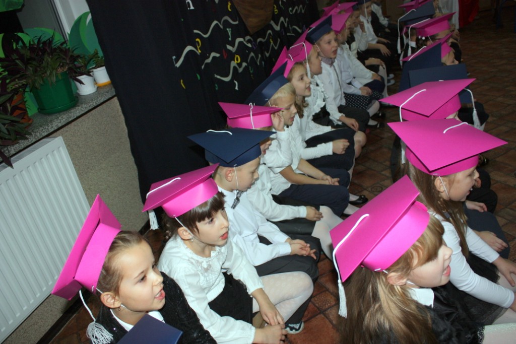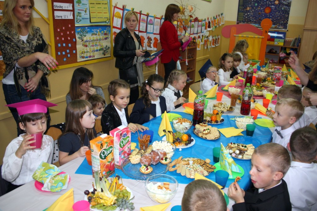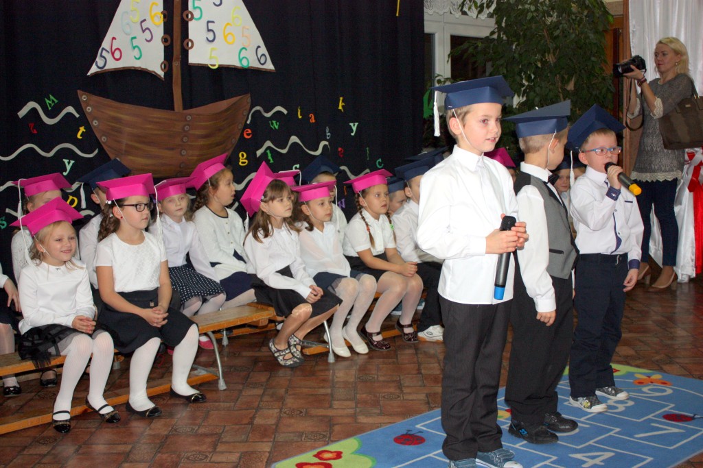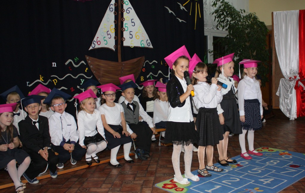 W dniu 29 października w naszej szkole odbyła się uroczystość Pasowania na Ucznia. Pierwszaki przygotowywały się do tego ceremoniału od początku roku szkolnego, poprzez naukę wierszyków, słów piosenek, tańca, tekstów w języku angielskim. Tego popołudnia panowała niezwykle uroczysta atmosfera, którą podkreślał nie tylko galowy strój uczniów, ale też obecność wielu ważnych gości: pana burmistrza Adama Kowalczuka, pani dyrektor Anny Andrzejewskiej i pani Marii Zaulicznej, wychowawczyń z przedszkola, przedstawicieli Rady Pedagogicznej, opiekunów Samorządu Uczniowskiego, rodziców. Motywem przewodnim scenografii, autorstwa pani Jolanty Paruk, był żaglowiec „Marzyciel”, napędzany wiatrem piątek i szóstek, którym dzieci popłynęły przez oceany wiedzy i świat wyobraźni. Chociaż część artystyczna wypadła znakomicie, to pretendenci do miana ucznia musieli na koniec wypić Napój Shreka – magiczna miksturę mocy, składającą się z różnych tajemniczych substancji, zapewniających powodzenie w szkole. Kolejną niespodzianką było to, że aktu pasowania dostąpiły nie tylko dzieci, ale i …pan Burmistrz. Pan Adam Kowalczuk został pasowany na Przyjaciela Szkoły i z tego powodu musiał bez skrzywienia się wypić sok z cytryny. Na koniec nie zabrakło życzeń od nauczycieli, młodzieży z Samorządu Uczniowskiego, rodziców. Miłym akcentem było wręczeniem nowo mianowanym żaczkom drobnych upominków w postaci gadżetów, słodkości i książeczek do kącika czytelniczego. Uroczystość zakończył słodki poczęstunek i zabawy prowadzone przez dziewczęta z Samorządu Szkolnego.