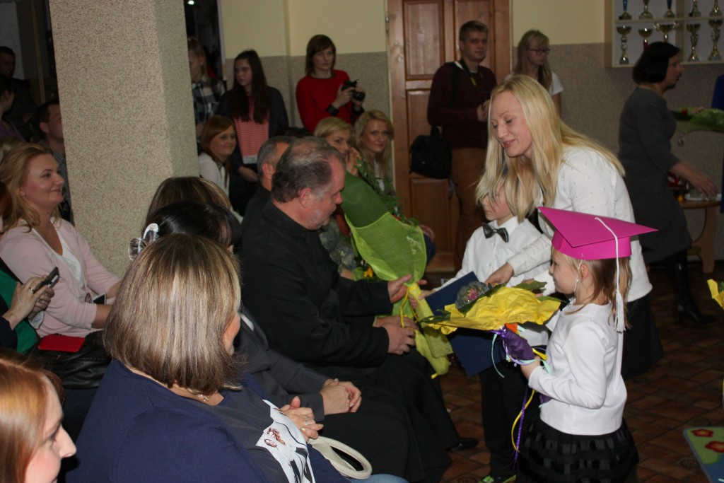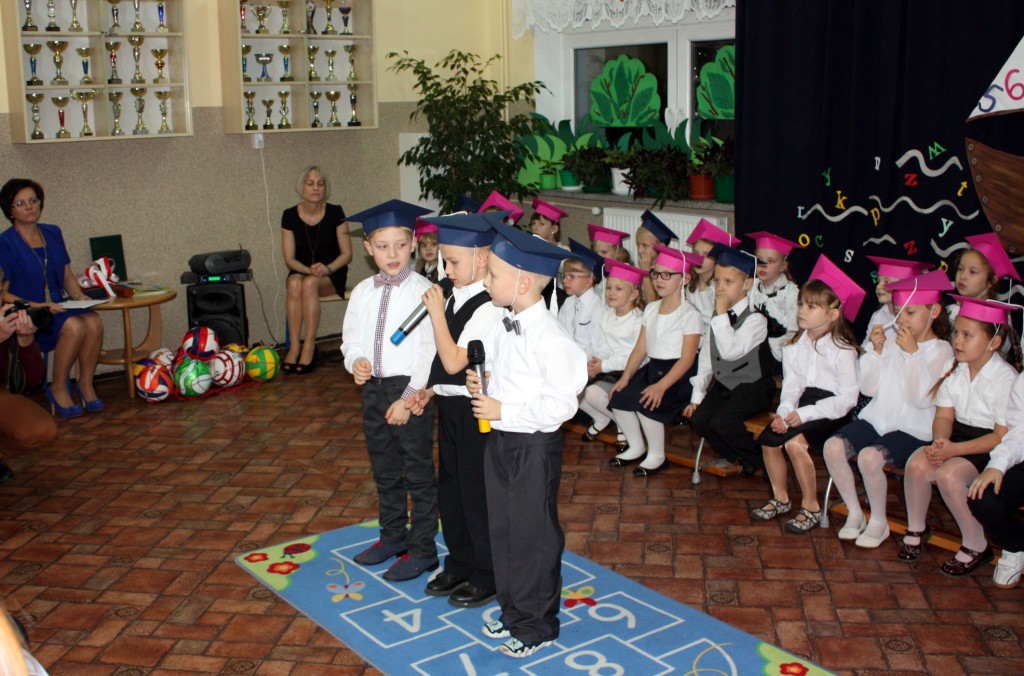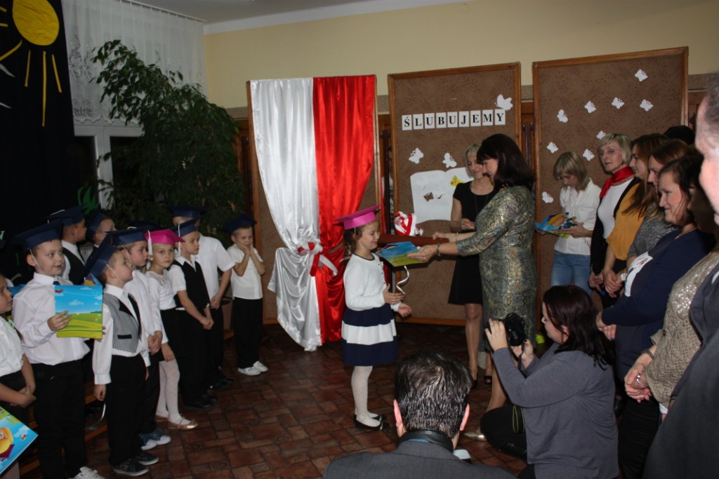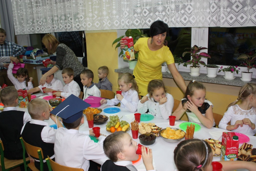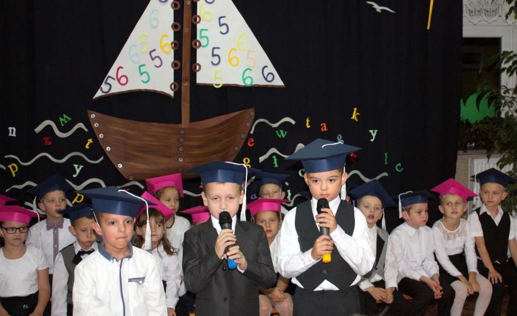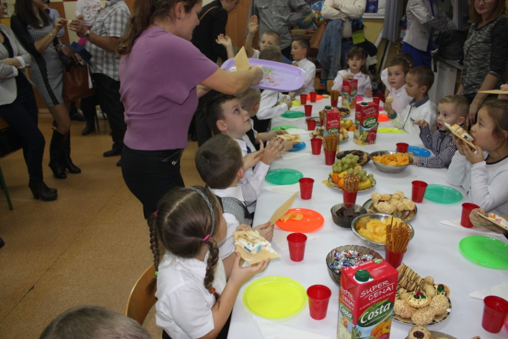 W dniu 29 października w naszej szkole odbyła się uroczystość Pasowania na Ucznia. Pierwszaki przygotowywały się do tego ceremoniału od początku roku szkolnego, poprzez naukę wierszyków, słów piosenek, tańca, tekstów w języku angielskim. Tego popołudnia panowała niezwykle uroczysta atmosfera, którą podkreślał nie tylko galowy strój uczniów, ale też obecność wielu ważnych gości: pana burmistrza Adama Kowalczuka, pani dyrektor Anny Andrzejewskiej i pani Marii Zaulicznej, wychowawczyń z przedszkola, przedstawicieli Rady Pedagogicznej, opiekunów Samorządu Uczniowskiego, rodziców. Motywem przewodnim scenografii, autorstwa pani Jolanty Paruk, był żaglowiec „Marzyciel”, napędzany wiatrem piątek i szóstek, którym dzieci popłynęły przez oceany wiedzy i świat wyobraźni. Chociaż część artystyczna wypadła znakomicie, to pretendenci do miana ucznia musieli na koniec wypić Napój Shreka – magiczna miksturę mocy, składającą się z różnych tajemniczych substancji, zapewniających powodzenie w szkole. Kolejną niespodzianką było to, że aktu pasowania dostąpiły nie tylko dzieci, ale i …pan Burmistrz. Pan Adam Kowalczuk został pasowany na Przyjaciela Szkoły i z tego powodu musiał bez skrzywienia się wypić sok z cytryny. Na koniec nie zabrakło życzeń od nauczycieli, młodzieży z Samorządu Uczniowskiego, rodziców. Miłym akcentem było wręczeniem nowo mianowanym żaczkom drobnych upominków w postaci gadżetów, słodkości i książeczek do kącika czytelniczego. Uroczystość zakończył słodki poczęstunek i zabawy prowadzone przez dziewczęta z Samorządu Szkolnego.