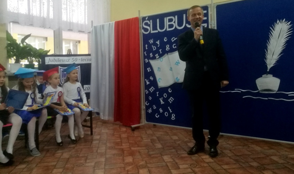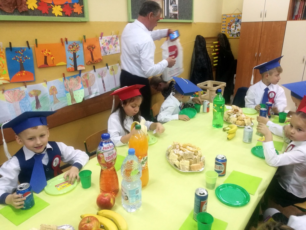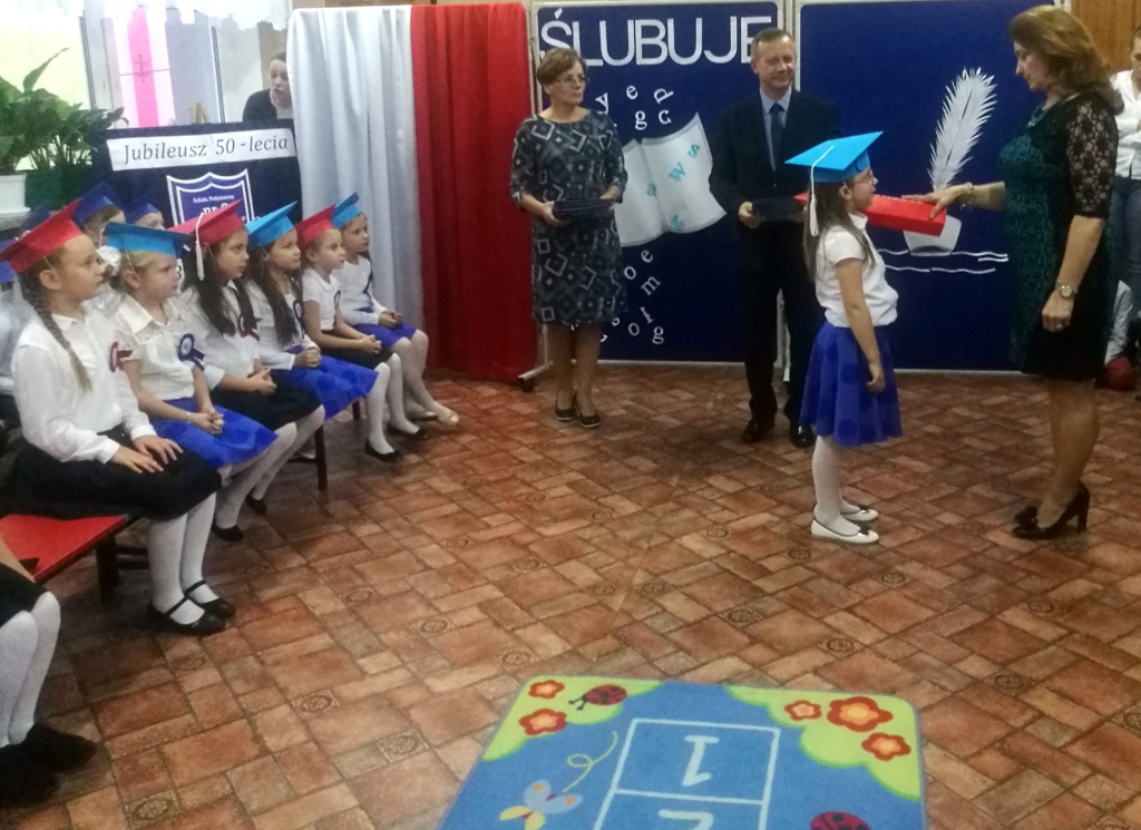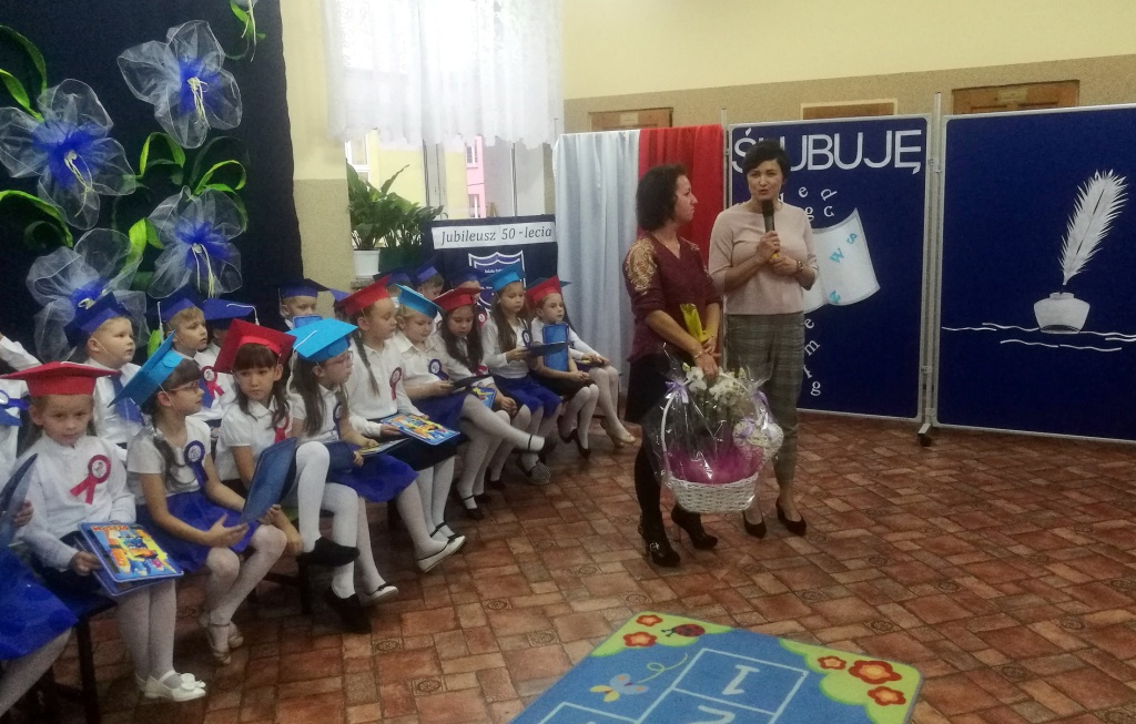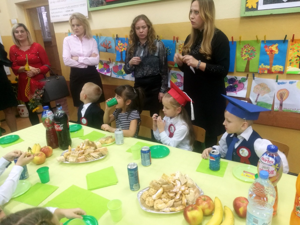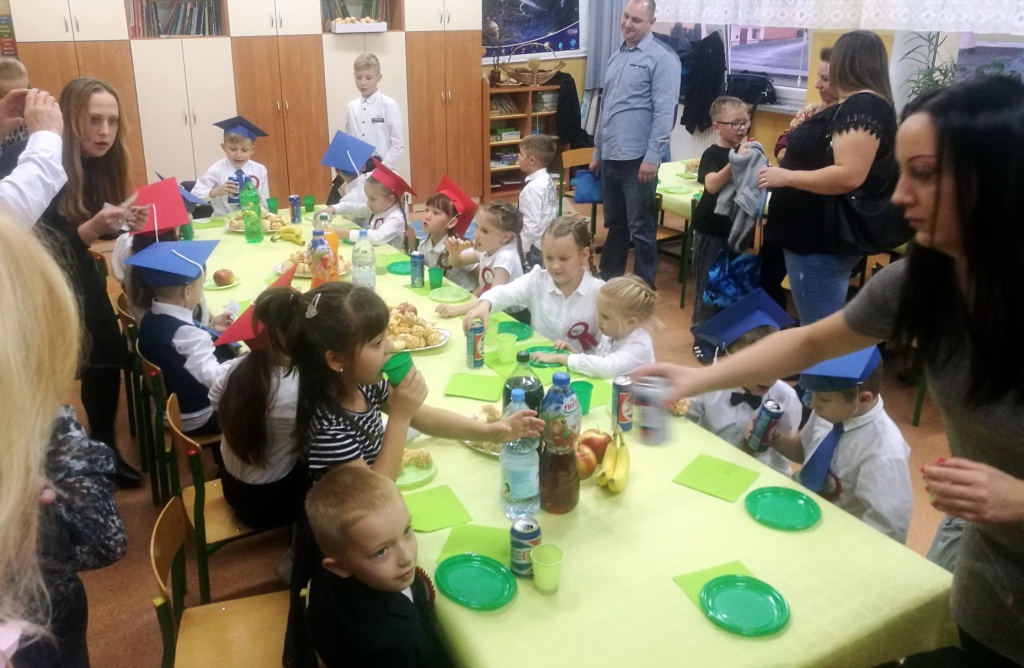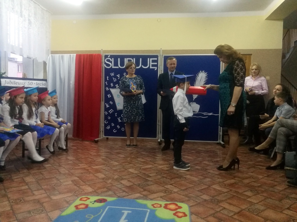 W dniu 25 X 2018 r. w Szkole Podstawowej nr 3 w Sokółce odbyła się uroczystość Pasowania na Ucznia. To jeden z najważniejszych dni w szkolnym życiu pierwszaków, gdyż od tego momentu stają się pełnoprawnymi uczniami szkolnej społeczności. Chłopcy i dziewczynki z klas pierwszych przygotowywali się do tej ceremonii od początku roku szkolnego pod okiem wychowawczyń. Uczyli się dzielnie tekstów, wierszy, piosenek polskich i po angielsku, tańca, wytrwale ćwiczyli podczas licznych prób. Wszystkich pozytywnie motywowała świadomość, że występ odbędzie się w obecności licznych gości. Na uroczystość przybyli: pan burmistrz Adam Kowalczuk, pani dyrektor Anna Andrzejewska, wychowawczynie z przedszkola, członkowie Rady Pedagogicznej, przedstawiciele Samorządu Uczniowskiego, rodzice, rodzeństwo oraz przyjaciele dzieci. Podniosły nastrój spotkania podkreślały odświętne stroje żaczków oraz piękna dekoracja, przygotowana przez panią Jolantę Paruk. W czasie występu przejętym pierwszakom towarzyszyła Dobra Wróżka, prowadząca ich przez różnorodne krainy i Czarna Wróżka, która troszkę tę podróż utrudniała. Dzieci wypadły znakomicie, pokazały, jak wiele już umieją, a kiedy na koniec połknęły tabletkę wiedzy i popiły eliksirem mądrości, to o ich naukę chyba możemy być spokojni. Po złożeniu ślubowania nastąpił akt pasowania i wręczenie pamiątkowych dyplomów. Nie zabrakło też wielu życzeń, słodkości i upominków od przybyłych gości. Po części oficjalnej wszyscy udali się na słodki poczęstunek, a następnie starsi koledzy zorganizowali pierwszakom zabawy taneczno-muzyczne.