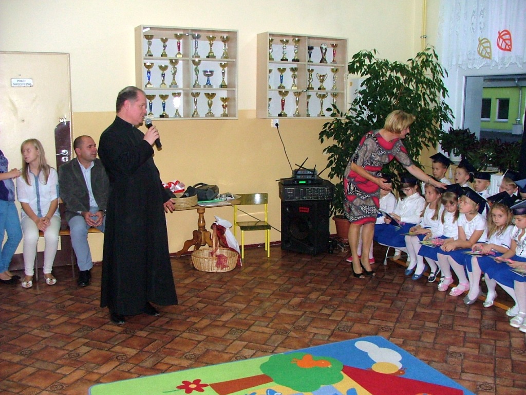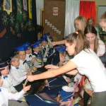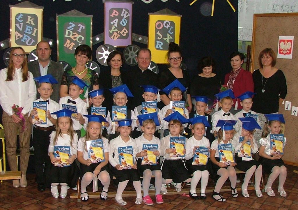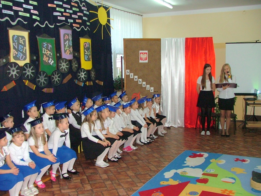 23 października 2014 roku w naszej szkole odbyła się jedna z najmilszych i najpiękniejszych uroczystości – Pasowanie na Ucznia. Gospodyniami spotkania były wychowawczynie Ia i Ib, panie Dorota Kamińska i Anna Andrzejewska, występująca również w roli dyrektora ZSO. Do pierwszaków przybyło wielu miłych gości, m.in. pani dyrektor przedszkola Elżbieta Pawlukiewicz oraz dawne wychowawczynie – Agnieszka Lubecka i Ewa Puszko, nauczyciele ZSO, rodzice, rodzeństwo i koledzy. Pan dyrektor Adam Kowalczuk nie mógł być osobiście, za to skorzystał z nowoczesnych metod komunikacji i złożył uczniom życzenia za pośrednictwem nagrania wideo. Część artystyczną poprowadziły uczennice klasy III gimnazjum: Ewa Kowalczuk i Natalia Żółtko. Dzieci klas pierwszych przygotowywały się do pasowania od początku roku szkolnego, pilnie pracowały na lekcjach, uczyły się wierszy, piosenek, krakowiaka, wytrwale ćwiczyły podczas prób. Nic też dziwnego, że perfekcyjnym występem udowodniły pełną gotowość do podjęcia trudów bycia uczniem. Ukoronowaniem przyjęcia do szkolnej braci było złożenie ślubowania, pasowanie poprzez dotknięcie wspaniałym ołówkiem i wręczenie dyplomów. Samorząd Uczniowski przygotował młodszym kolegom drobne upominki w postaci magicznych długopisów i planów lekcji. W imieniu rodziców głos zabrała pani Joanna Normantowicz, życząc pierwszakom oraz ich nauczycielom wielu sukcesów i wspaniałych chwil w szkole. Po części oficjalnej wszyscy spotkali się na słodkim poczęstunku przygotowanym przez Rodziców i tanecznej zabawie prowadzonej przez dziewczęta z Samorządu Szkolnego.