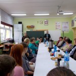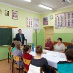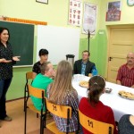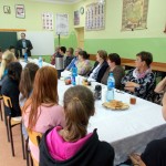 Zostali na nie zaproszeni seniorzy z terenu i okolic Sokółki oraz uczniowie naszej szkoły. Zajęcia uświetnił bardzo ciekawy wykład pana Jarosława Wasilewskiego, pracownika Instytutu Pamięci Narodowej w Białymstoku. Pan Wasilewski opowiadał zebranym jak wyglądał sytuacja gospodarcza i społeczna w Polsce po 1945 roku. Mówił jak funkcjonowała ówczesna gospodarka, jak ciężko żyło się naszym rodakom w tamtym okresie. W czasie wykładu wywiązała się ciekawa dyskusja między panem Wasilewskim (znawcą tematu) oraz zebranymi seniorami, którzy pamiętali wspomniane czasy niejednokrotnie z autopsji. Młodzież słuchała wymiany zdań z zapartym tchem i zapewne wiele z takiej właśnie formy spotkania wyniosła.