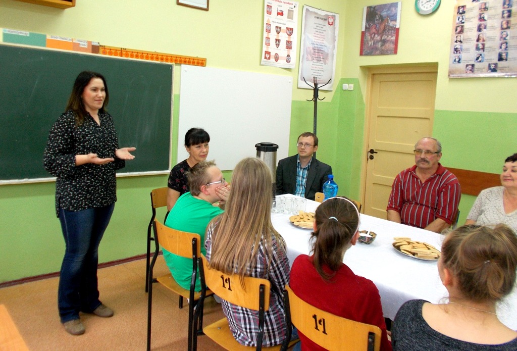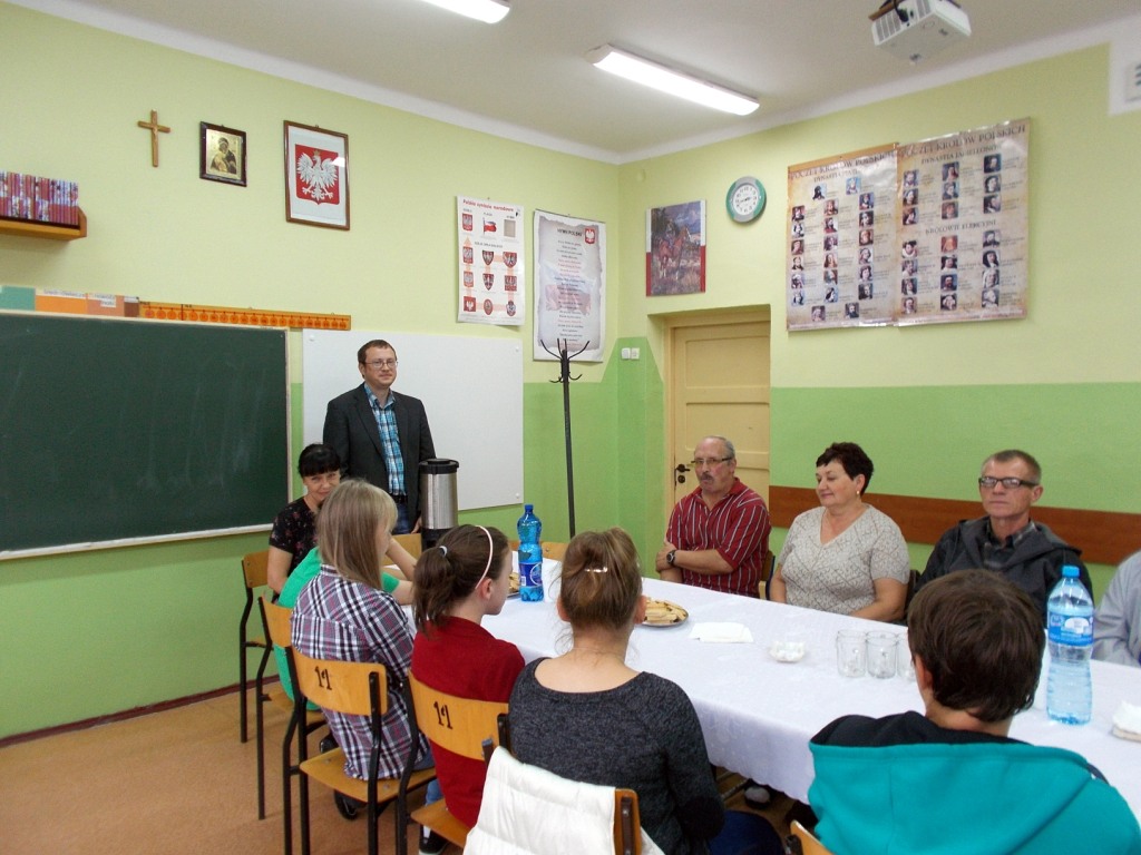 Zostali na nie zaproszeni seniorzy z terenu i okolic Sokółki oraz uczniowie naszej szkoły. Zajęcia uświetnił bardzo ciekawy wykład pana Jarosława Wasilewskiego, pracownika Instytutu Pamięci Narodowej w Białymstoku. Pan Wasilewski opowiadał zebranym jak wyglądał sytuacja gospodarcza i społeczna w Polsce po 1945 roku. Mówił jak funkcjonowała ówczesna gospodarka, jak ciężko żyło się naszym rodakom w tamtym okresie. W czasie wykładu wywiązała się ciekawa dyskusja między panem Wasilewskim (znawcą tematu) oraz zebranymi seniorami, którzy pamiętali wspomniane czasy niejednokrotnie z autopsji. Młodzież słuchała wymiany zdań z zapartym tchem i zapewne wiele z takiej właśnie formy spotkania wyniosła.