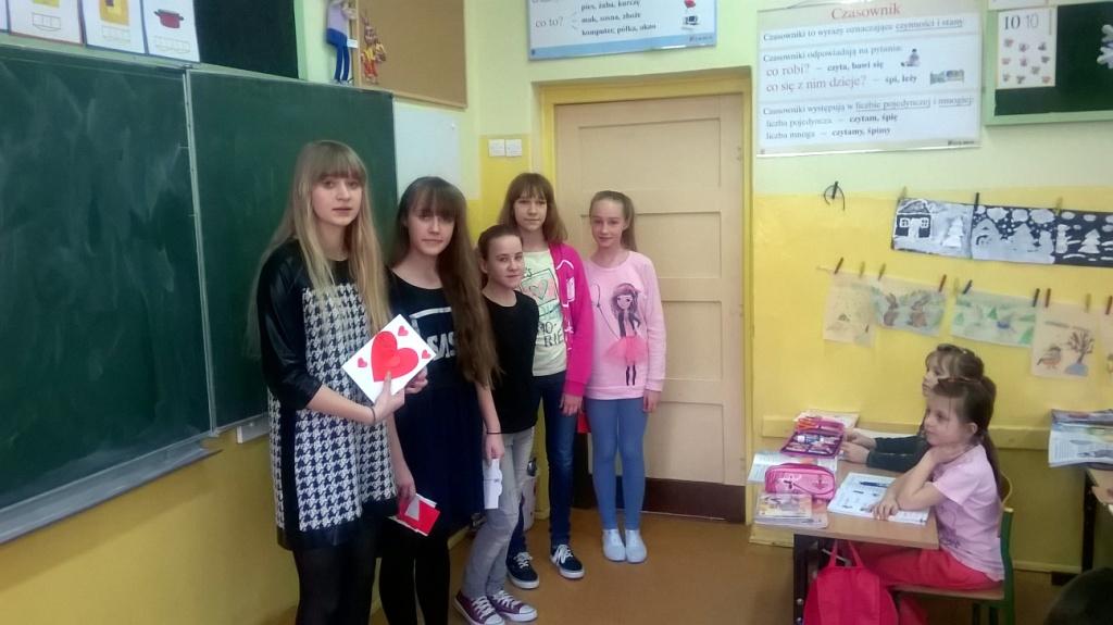 Jak co roku w naszej szkole działała poczta, która uszczęśliwiła wszystkich zakochanych i nie tyko, ozdobnymi, walentynkowymi kartkami. Posłańcy, uczniowie z Samorządu Szkoły Podstawowej i Gimnazjum, dotarli również do nauczycieli i wręczyli im symboliczne serduszka.