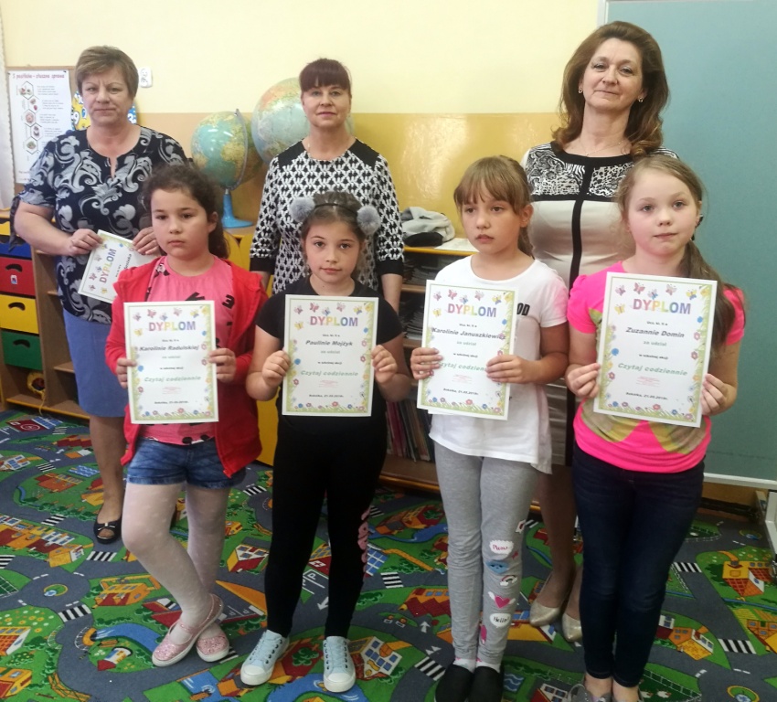 W świetlicy szkolnej została podsumowana akcja rozpropagowana przez sieć sklepów Biedronka „Czytaj codziennie”, która trwała od grudnia 2018 r. do 17 maja 2019 r. Za każde minimum 10 minut czytania, poświadczonego podpisem rodzica, dziecko otrzymywało naklejkę ze słodziakiem, którą wklejało do albumu. Po podliczeniu zdobytych naklejek wyniki są następujące: