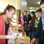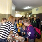 W tym dniu zorganizowaliśmy kiermasz ciast przygotowanych przez wolontariuszy z SKW i członków SU. Nasze przedsięwzięcie spotkało się z olbrzymim odzewem zarówno ze strony uczniów, jak i nauczycieli oraz innych pracowników szkoły. Udało nam się sprzedać ponad dwadzieścia blach różnych wypieków. W ten sposób udało nam się zebrać dość pokaźną kwotę – 850 złotych. Całość funduszy zostanie przekazana na leczenie i sterylizację podopiecznych sokólskiego schroniska.