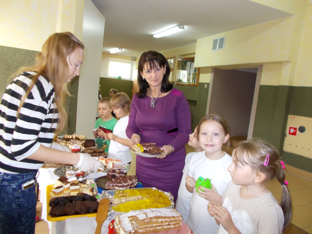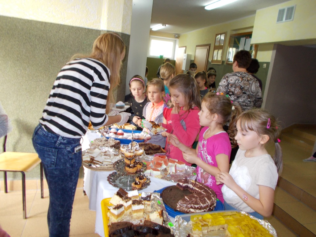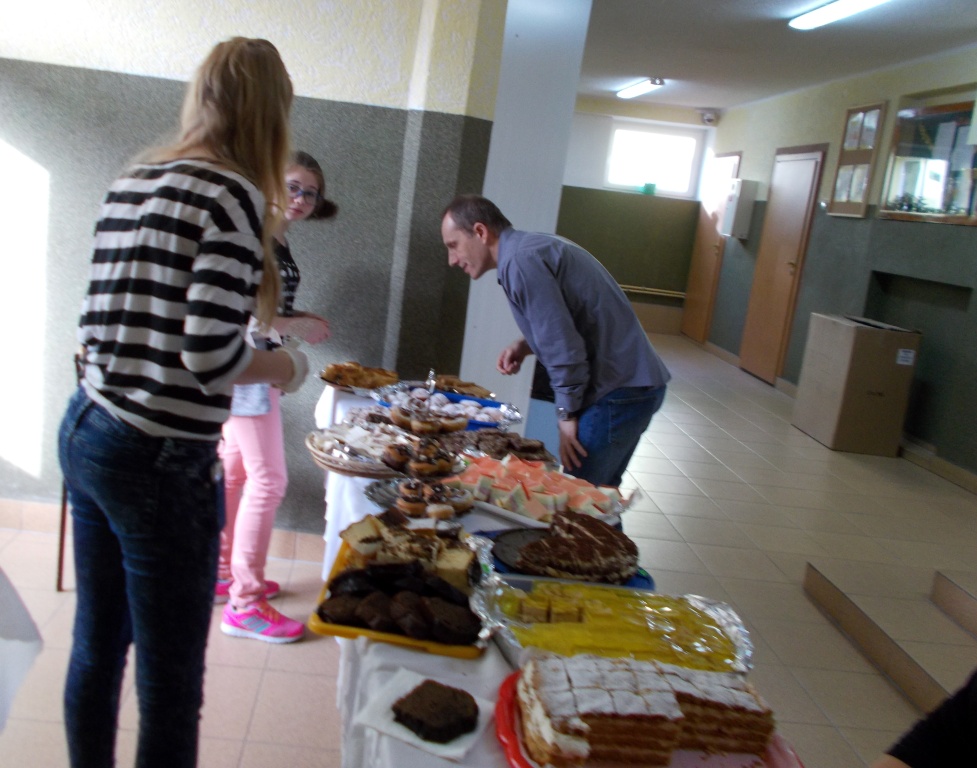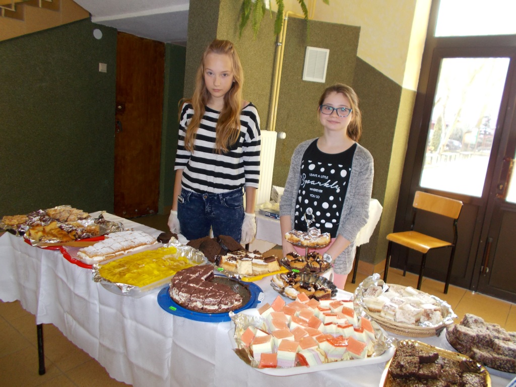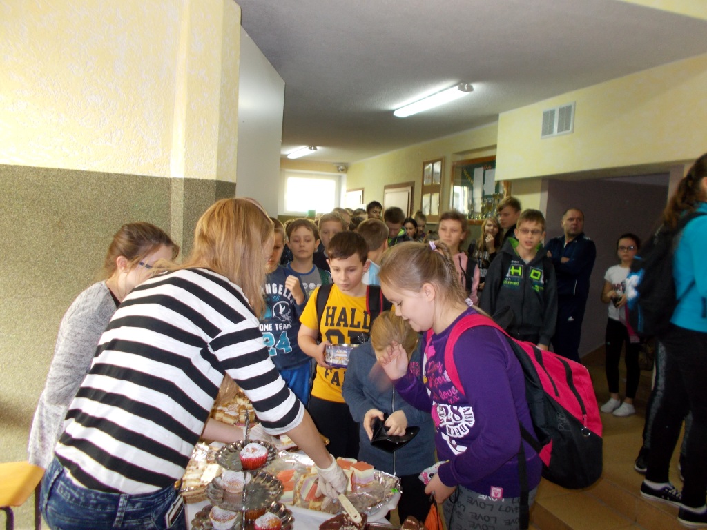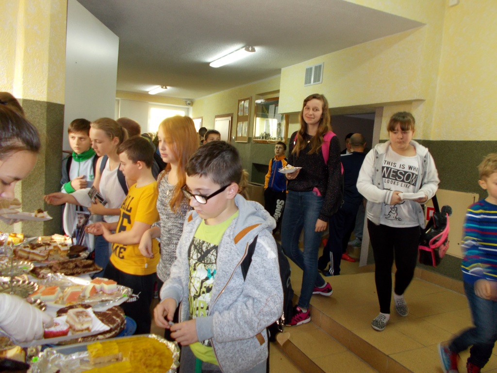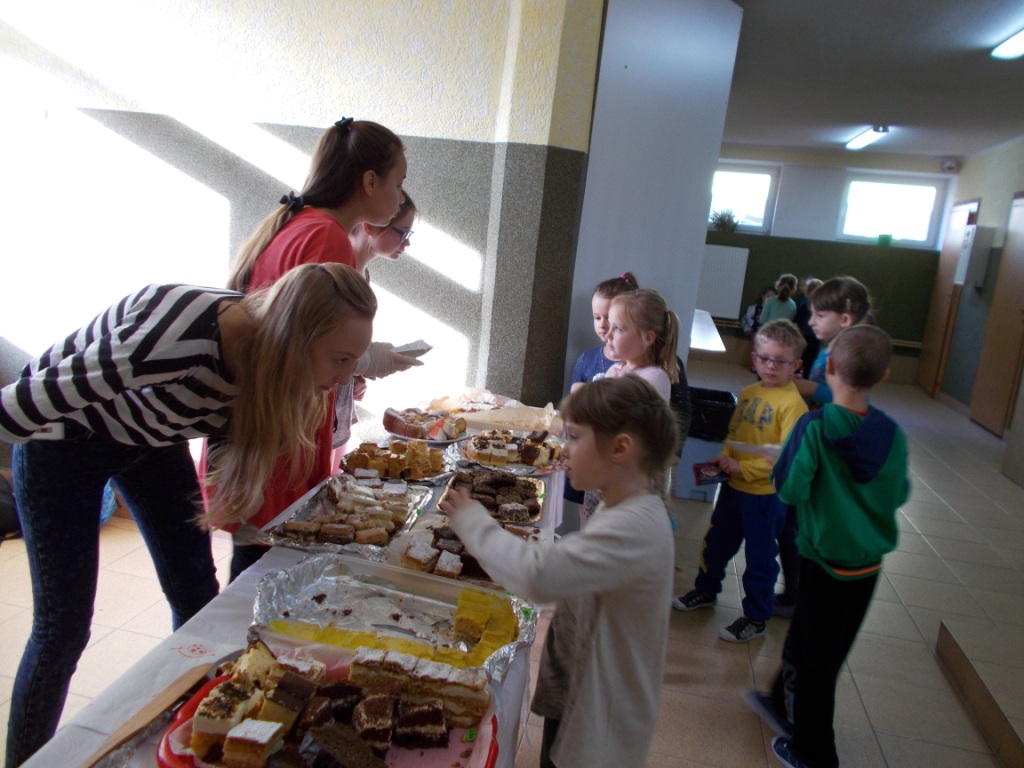 W tym dniu zorganizowaliśmy kiermasz ciast przygotowanych przez wolontariuszy z SKW i członków SU. Nasze przedsięwzięcie spotkało się z olbrzymim odzewem zarówno ze strony uczniów, jak i nauczycieli oraz innych pracowników szkoły. Udało nam się sprzedać ponad dwadzieścia blach różnych wypieków. W ten sposób udało nam się zebrać dość pokaźną kwotę – 850 złotych. Całość funduszy zostanie przekazana na leczenie i sterylizację podopiecznych sokólskiego schroniska.