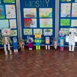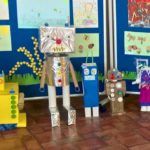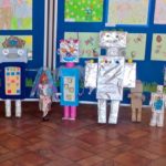Dzieci z klasy III a przygotowały wystawę robotów z materiałów wtórnych. Było to zadanie domowe, do wspólnego wykonania z rodzicami. Jak widać praca została potraktowana poważnie, wykonana perfekcyjnie, pomysłowo i z poczuciem humoru. Wśród eksponatów znalazły się m.in.: robot-panna młoda, robot-lodówka oraz robotopies. Ta nietypowa praca domowa stanowiła część realizacji materiału programowego, ale pokazała też, że z rodzicami można wspólnie twórczo spędzić czas i wyczarować coś, co wzbudziło miłe zainteresowanie uczniów naszej szkoły. Wszystkie roboty zostały ocenione na szóstkę.