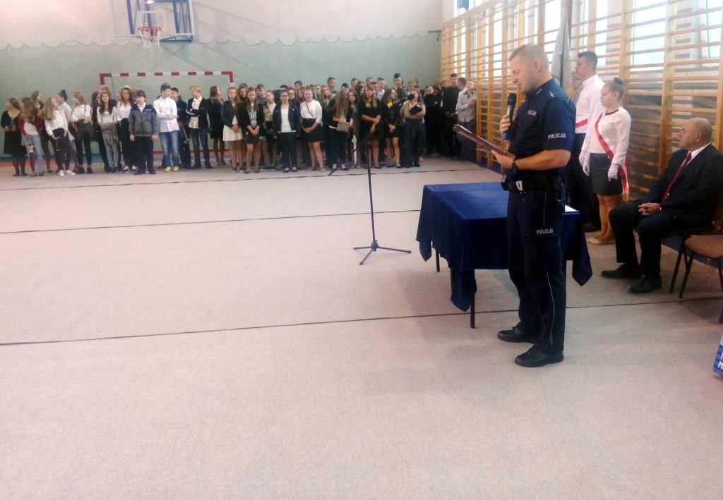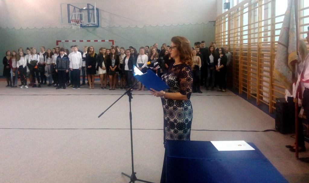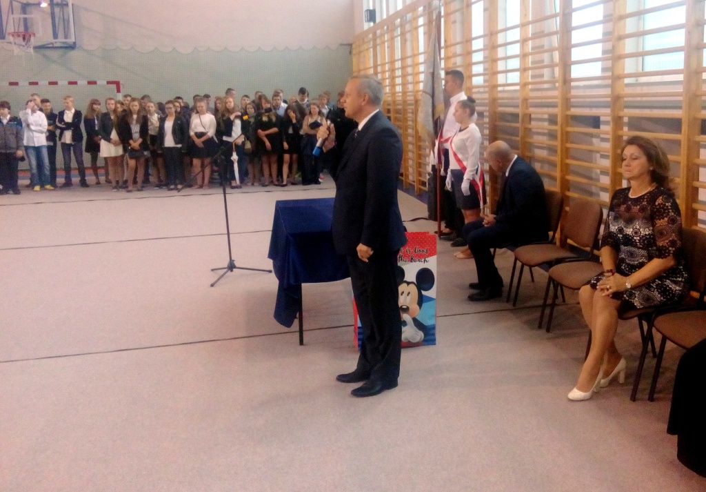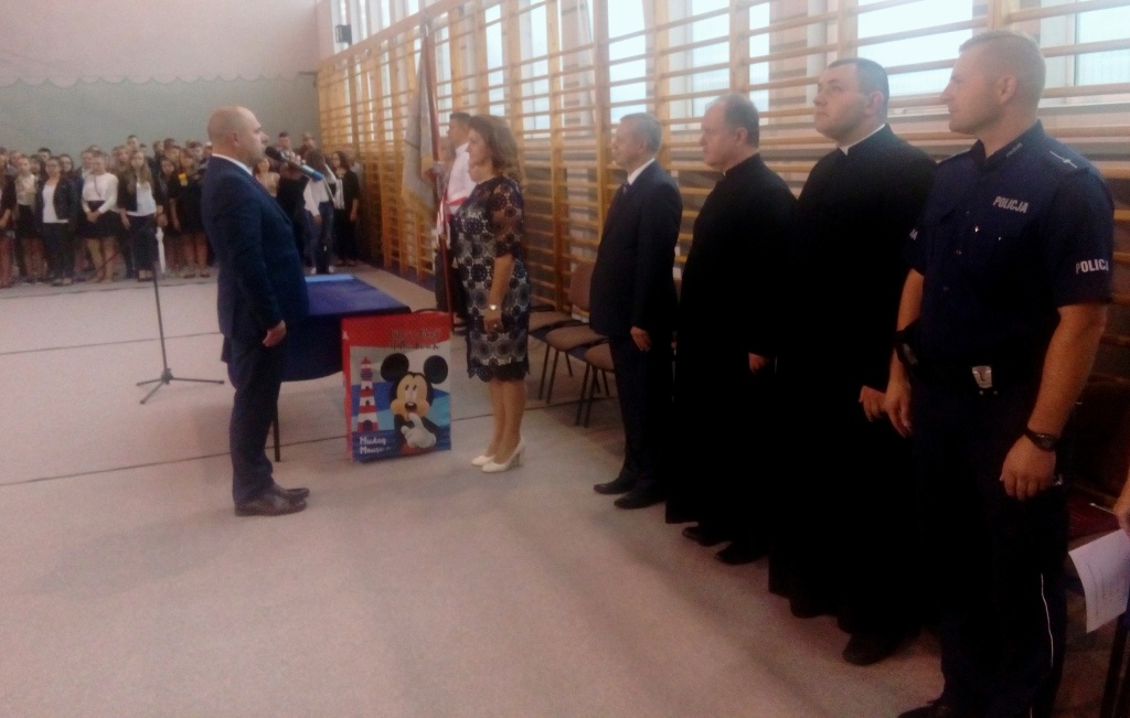 W dniu 4 września uczniowie naszej szkoły rozpoczęli nowy rok. To radosne święto dla wszystkich wracających po wakacjach, bo szkoła to również przyjaciele, koleżeńskie spotkania, wiele atrakcji i ciekawych zajęć pozalekcyjnych. Na tegoroczną inaugurację przybyli goście w osobach: pan burmistrz Adam Kowalczuk, młodszy aspirant Jarosław Szoka, w imieniu księdza proboszcza ksiądz diakon Tomasz Mnich oraz uczniowie, rodzice, pracownicy administracyjni i kadra pedagogiczna. Uroczystość rozpoczęła pani dyrektor Anna Andrzejewska, nawiązując w swoim wystąpieniu przede wszystkim do zadań związanych z trwającą reformą oświaty. W tym roku po kilkunastoletniej nieobecności pojawiły się klasy siódme podstawówki, za to nie ma klas pierwszych gimnazjum. To sprawia, że przed nami trudny czas, nowe wyzwania, inne rozłożenie akcentów w pracy dydaktyczno-wychowawczej. Jak zapewnił pan burmistrz wszyscy dołożą starań, by zmiany wprowadzane w szkołach były jak najmniej odczuwalne i odbywały się z pożytkiem dla uczniów. „Mamy nadzieję, że obecny etap wdrażania reformy edukacji będzie przebiegał w naszych szkołach w sposób harmonijny” – podkreślił. Na koniec odbyło się spotkanie uczniów i rodziców z wychowawcami klas .