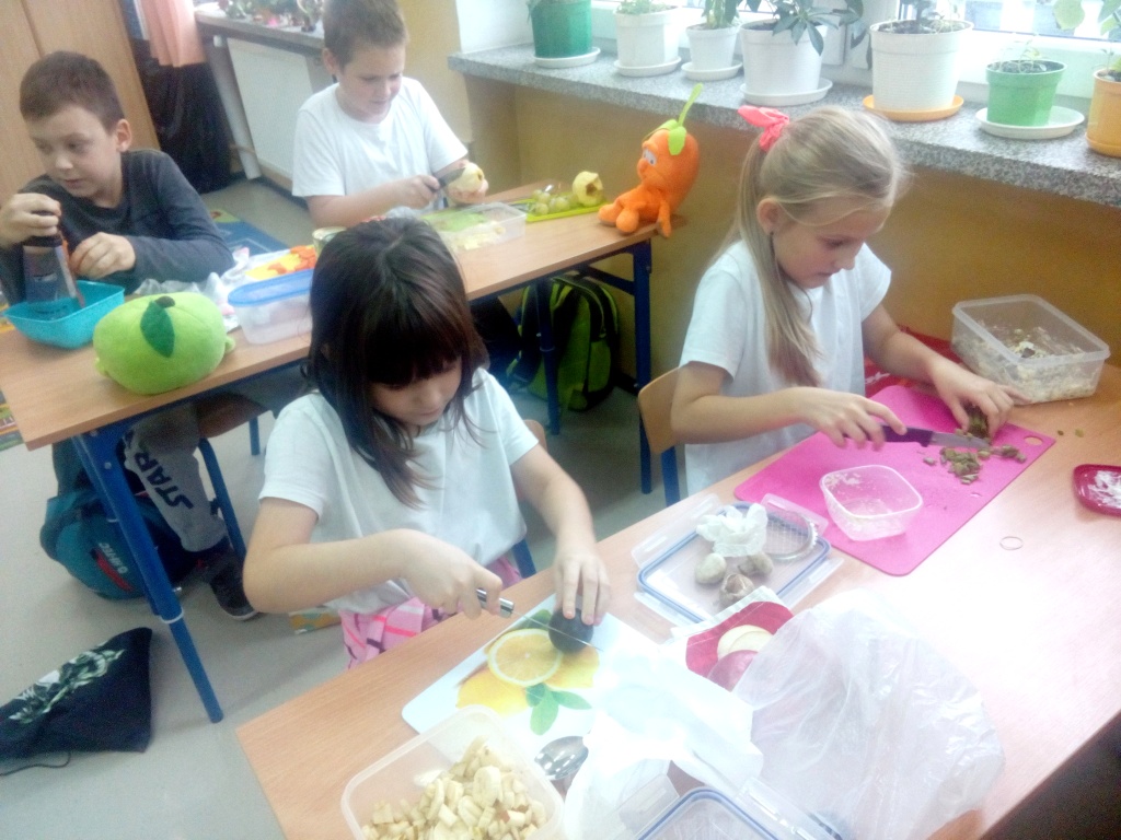 Już od siedmiu lat, 8 listopada obchodzimy Dzień Śniadanie Daje Moc. Pierwsze śniadanie jest najważniejszym posiłkiem w ciągu dnia, sprawia, że dzieci są zdrowe, mają energię do nauki i zabawy, wzmacniają odporność. Codzienne śniadanie pomaga dobrze zacząć dzień i daje równy start w szkolne obowiązki. Z tej okazji uczniowie młodszych klas naszej szkoły przygotowali zdrowe śniadaniowe pyszności: kanapki, sałatki, szaszłyki owocowe i warzywne, desery i przekąski, soki. Wspólne śniadanie to nie tylko świetna zabawa, a zarazem nauka o tym jak ważne jest codzienne, zdrowe śniadanie i jak łatwo samodzielnie je przygotować. Zwłaszcza w dzisiejszym świecie, pełnym łatwo dostępnych, niezdrowych i wysoko przetworzonych produktów, jest to bardzo ważne.