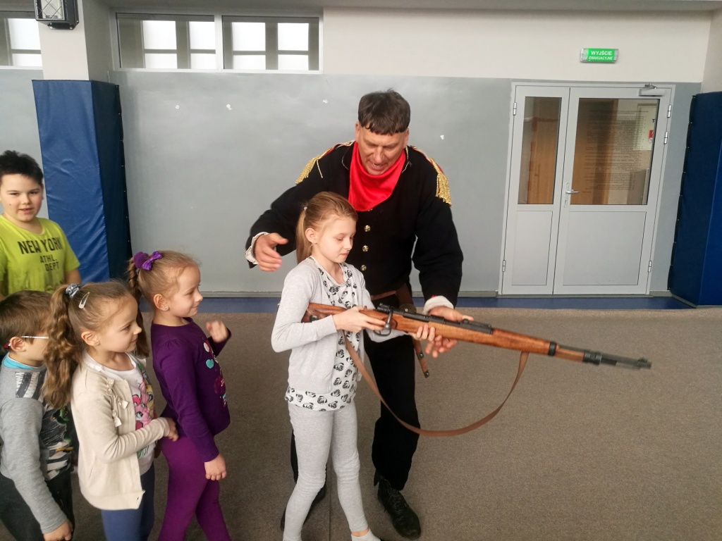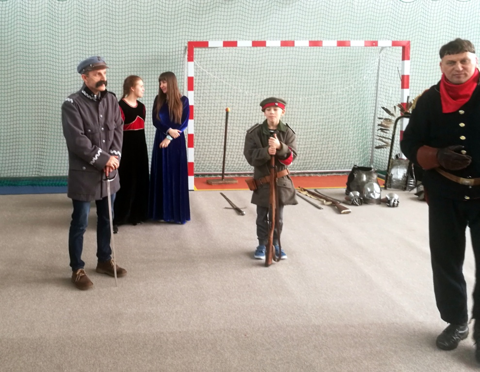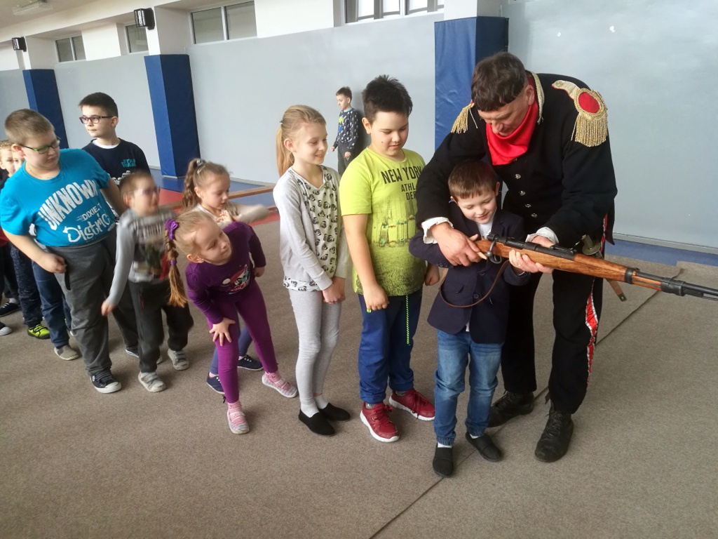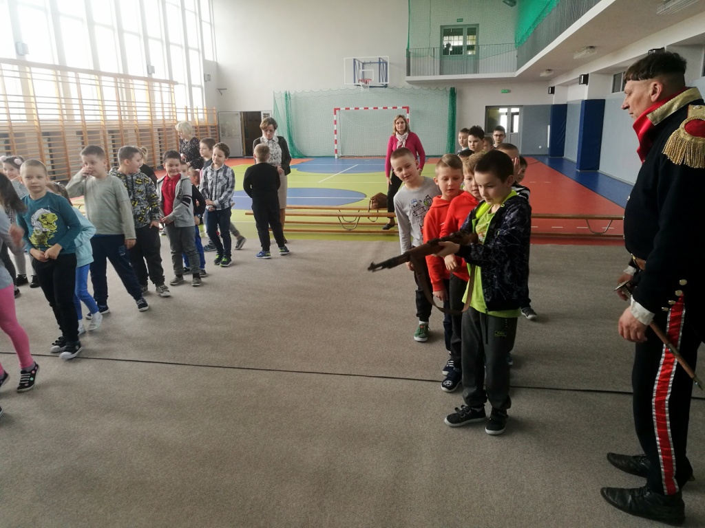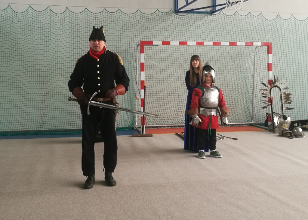 Po raz kolejny gościliśmy w naszej szkole przedstawicieli Bractwa Rycerskiego z Golubia – Dobrzynia. Jego członkowie przygotowali lekcję żywej historii. Tematem spotkania było przybliżenie oręża polskiego na przestrzeni dziejów od średniowiecza do czasów legionów Józefa Piłsudskiego. Uczniowie mogli zobaczyć jak wyglądały mundury i jaką bronią posługiwali się żołnierze. Spotkanie jak zwykle było pełne interesujących treści, nie zabrakło w nim również poczucia humoru.