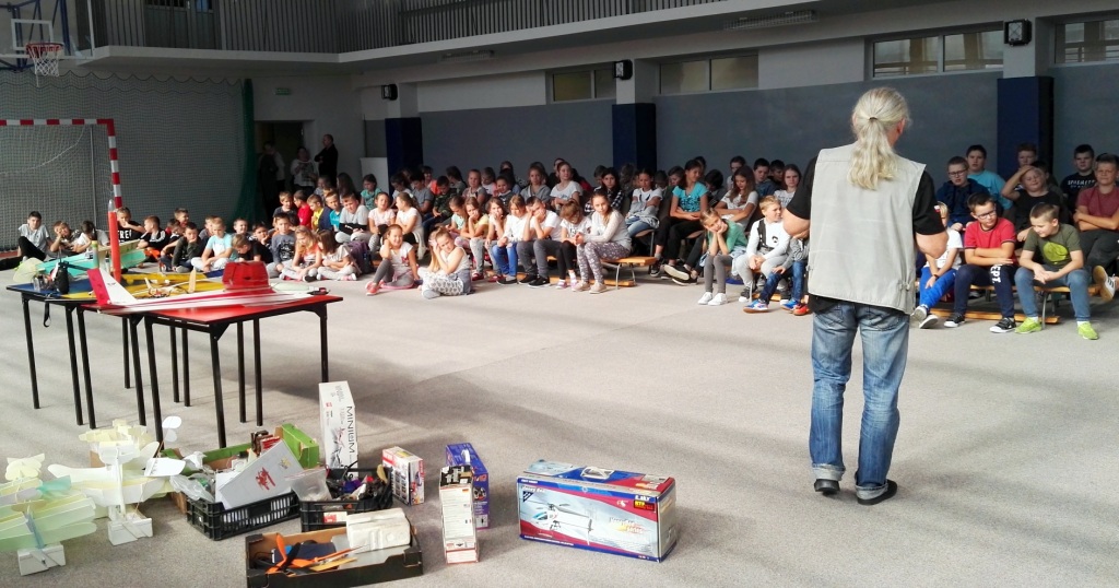 Dnia 18 września 2017 r. młodzież naszej szkoły spotkała się z Arnoldem Maculewiczem, zapalonym społecznikiem, modelarzem, ratownikiem wodnym i pomysłodawcą wielu imprez. W czasie spotkania nasz gość opowiadał, skąd się wzięło jego zamiłowanie do modelarstwa, w jakich zawodach brał udział, gdzie poznawał tajniki latania oraz konstruowania modeli samolotów i innych maszyn latających. Wraz z drugim gościem, Krzysztofem Oszerem, przedstawił techniki budowy modeli, zdradził też kilka sztuczek i tajników tej działalności hobbystyczno-sportowej. Prezentacja była bardzo ciekawa, na pewno niektórych zachęciła do odwiedzenia pracowni modelarskich.