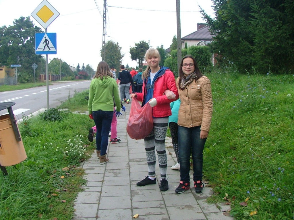 „Turysto! Szanuj środowisko!” -pod takim hasłem ruszyła tegoroczna akcja „Sprzątanie świata – Polska 2014”. Tym razem organizatorzy zachęcają do refleksji nad wpływem, jaki wywieramy na środowisko w czasie wypoczynku – na urlopie, w czasie pobytu na łonie przyrody. Przy okazji „Akcji” warto spróbować odpowiedzieć sobie na następujące pytania: w jaki sposób oddziałujemy na przyrodę podczas wędrówki górskim szlakiem, podczas spaceru po lesie czy rejsu żaglówką po jeziorze? Co każdy z nas może zrobić, żeby zmniejszyć swój negatywny wpływ na środowisko? Jak możemy ograniczyć tworzenie odpadów? Dlaczego warto prowadzić ich selektywną zbiórką? Nasza szkoła również aktywnie uczestniczyła w akcji. 26 września o czystość środowiska zadbali uczniowie klas 4-6 szkoły podstawowej pod opieką p. Małgorzaty Chociej a 29 września uczniowie klas 2a i 2b gimnazjum pod opieką p. Katarzyny Chociej i p. Aliny Jakimiec.