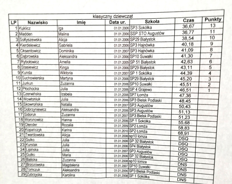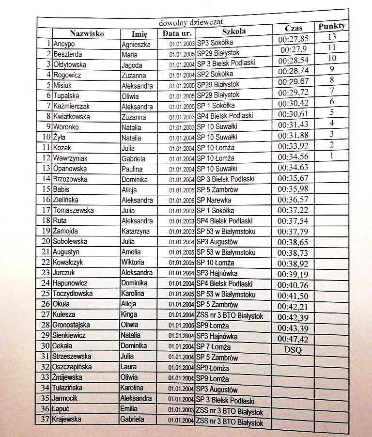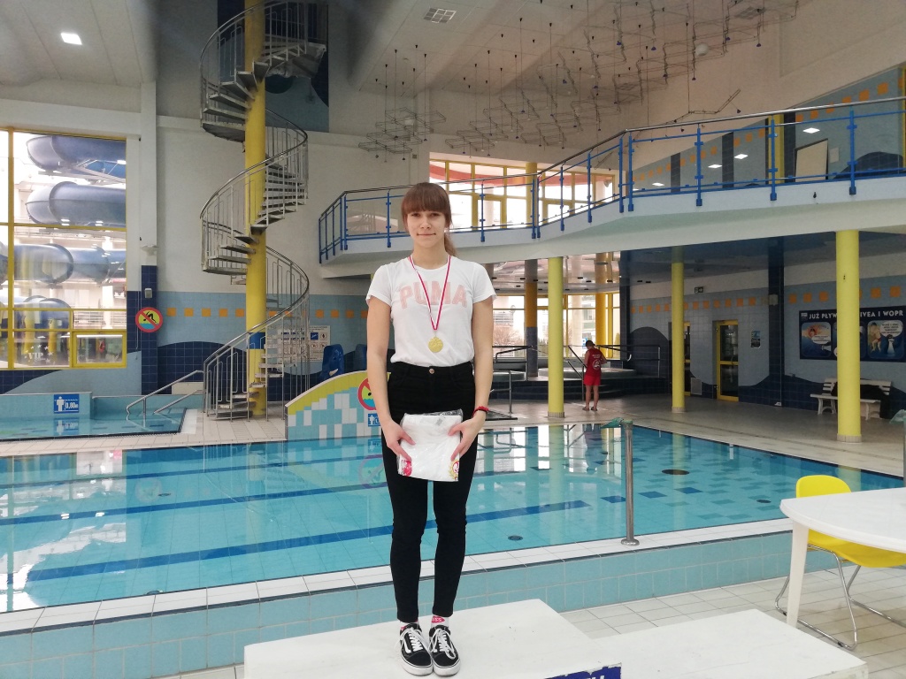 Agnieszka Ancypo uczennica naszej szkoły zdominowała rywalizację w stylu dowolnym dziewcząt na dystansie 50m, zdobywając I miejsce i tytuł Mistrzyni Województwa Podlaskiego. To już piąty tytuł Mistrzyni Województwa naszej uczennicy z rzędu. Pięć lat niepokonana! Nie mieliśmy jeszcze w historii szkoły tak wybitnego sportowca! Brawo!