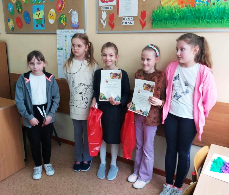 Konkurs organizowany przez Szkołę Podstawową z Oddziałami Integracyjnymi w Janowszczyźnie skierowany był do uczniów klas I – VIII. Z naszej szkoły przekazaliśmy 10 prac konkursowych. Wszystkie były interesujące i zachwycały starannością wykonania. Laureatami konkursu zostały: Stanisława Primak kl. III a – I miejsce, Zuzanna Natunewicz kl.I b – II miejsce, Lena Gasperczyk kl. II a – wyróżnienie. Za zdobyte miejsca uczennice otrzymały dyplomy i nagrody rzeczowe, pozostali uczestnicy dyplomy za udział.