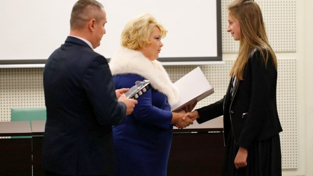 Julia Borowska jest uczennicą klasy III b Gimnazjum nr 2 na Osiedlu Zielonym w Sokółce. Ze względu na swoją aktywność, zaangażowanie i liczne sukcesy, to jedna z bardziej rozpoznawalnych nastolatek nie tylko w swojej szkole, ale i lokalnym środowisku. Mieszkańcy Sokółki znają Julkę jako radną Młodzieżowej Rady Miejskiej oraz uzdolnioną wokalistkę, biorącą udział w różnorodnych akademiach i wydarzeniach kulturalno-patriotycznych na forum miasta. W ostatnim czasie uczennica odniosła spektakularny sukces zdobywając, jako jedyna w powiecie, tytuł laureata Wojewódzkiego Konkursu Przedmiotowego z Matematyki. To osiągnięcie jest wynikiem wytężonej pracy z nauczycielem matematyki ZSO, panem Jarosławem Raczkowskim. „ W tym roku było wyjątkowo dużo zadań o charakterze otwartym i mało czasu na ich rozwiązanie. Ale dzięki temu, że z panem Raczkowskim przerobiłam zbiór zadań o grubości ośmiu centymetrów, udało się znaleźć właściwe rozwiązania” – żartuje Julka. W poprzednich latach nastolatka zdobyła tytuł laureata Wojewódzkiego Konkursu Przedmiotowego z Biologii i finalisty z Geografii, niedawno zaś II miejsce drużynowo w Powiatowym Konkursie „Kopernik i Wszechświat” . Przez długi czas Julka trenowała grę w szachy, w których też okazała się być jakże skuteczną. Na swoim szachowym koncie ma takie sukcesy jak I miejsce w Międzynarodowym Kresowym Turnieju Szachowym, III miejsce w Mistrzostwach Województwa Podlaskiego w Szachach oraz udział w turnieju najlepszych szachistów Podlasia, który miał miejsce w gmachu Senatu RP. Aż trudno sobie wyobrazić, że uczennica znajduje jeszcze czas na naukę w szkole muzycznej Rockalizacja, działające przy SOK-u, lekcje gry na gitarze, a wcześniej również na pianinie oraz działalność w Teatrze Amatorskim „Coś”. Jest niezaprzeczalnym omnibusem, w jak najbardziej pozytywnym tego słowa znaczeniu. W swojej szkole została wyróżniona statuetką Szkolnego Oskara – za wyniki w nauce i postawę społeczną. Na szczęście sukcesy nie zawróciły Julce w głowie, dziewczyna ma dystans do siebie i nie uważa, że robi coś nadzwyczajnego. Plany na przyszłość to klasa biologiczno-chemiczna w liceum (ze względu na tytuły laureata może wybrać każde w województwie), a potem studia medyczne. Julce gratulujemy sukcesów i trzymamy kciuki, by spełniły się jej wszystkie plany – i te zawodowe, i osobiste. Jeszcze o niej nie raz usłyszymy.